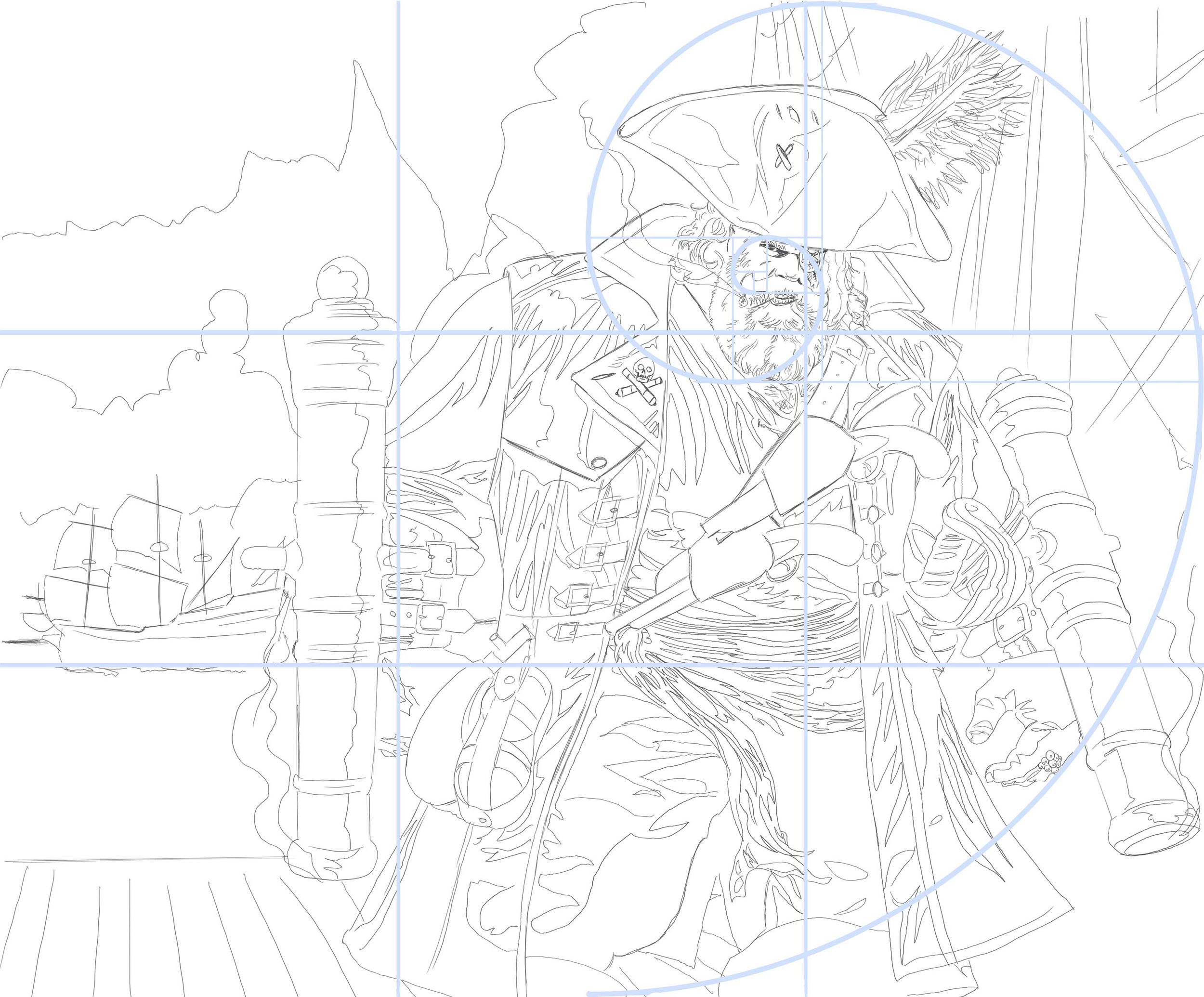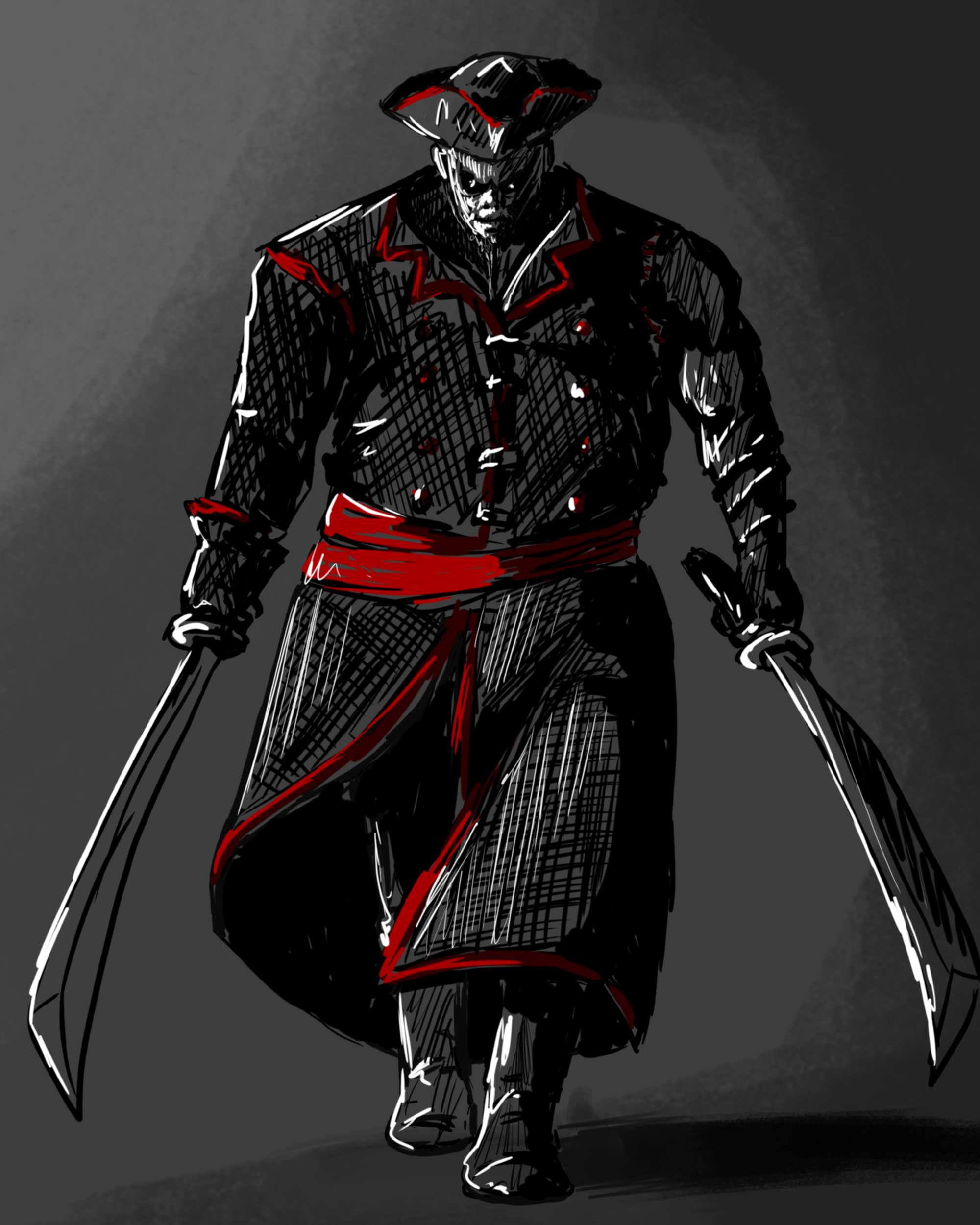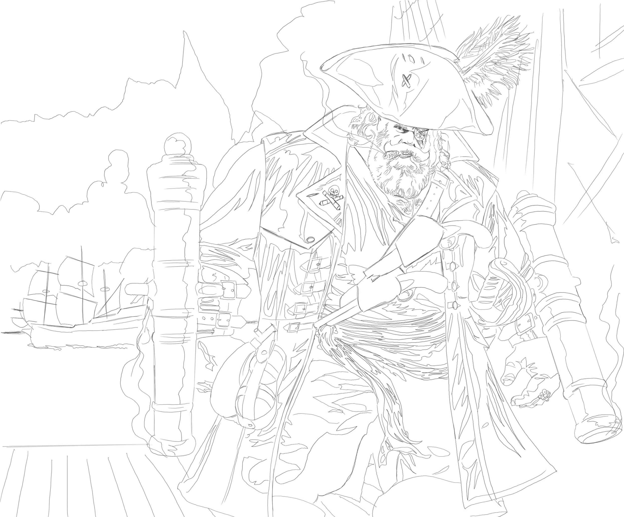 9. C'est parti pour une illustration pour ce nouveau challenge. Je me lance sur Roger Boom Boom, bien massif avec ses deux canons de navire, ses boulets, sa poudre et son cigare pour allumer la mèche. Il est borgne ce qui lui permet de viser juste. Il se trouve à l'abordage d'un navire, d'autres personnages seront rajouter par la suite sur l'arrière plan afin d'y nmettre un peu d'action. Voici les premiers croquis et la compo finale.