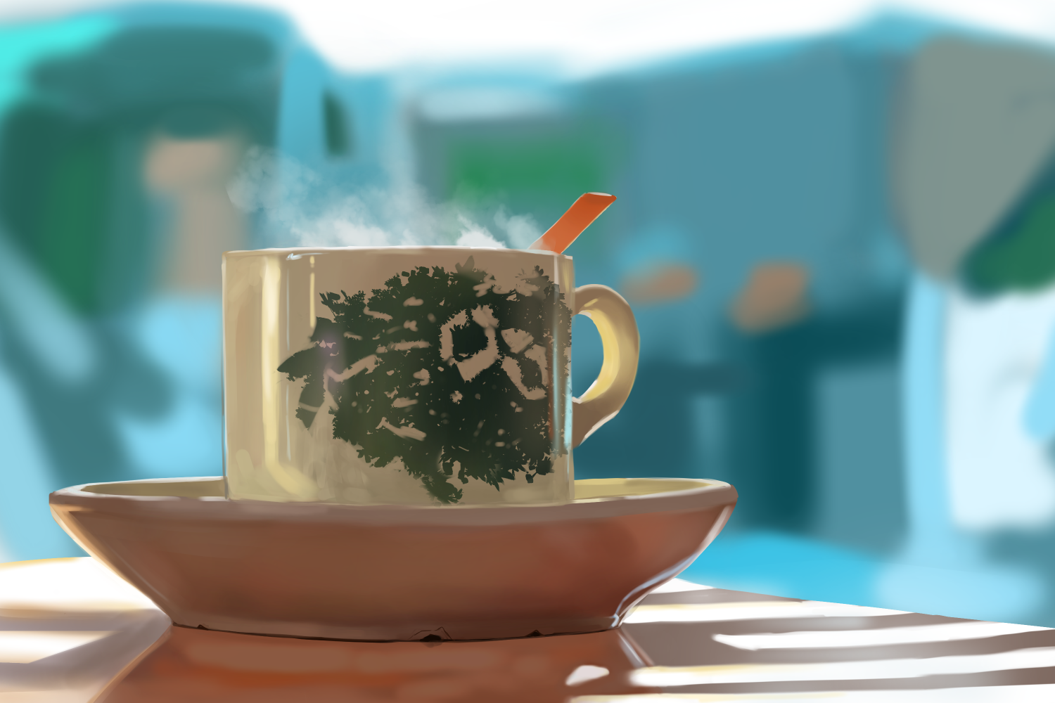 Hey @melrx yes pour la tasse c'est good !;) Pour ta branche c'est mieux pour le fond mais pour le blending je trouve que maintenant ta lumière orangée est trop prononcée et élargie , tu peux venir la réduire par rapport au volume de ta branche . Tu devrais avoir de la lumière uniquement sur la partie supérieur de ta branche et vraiment avoir ce contraste fort avec l'ombre au milieu . keep going ! -