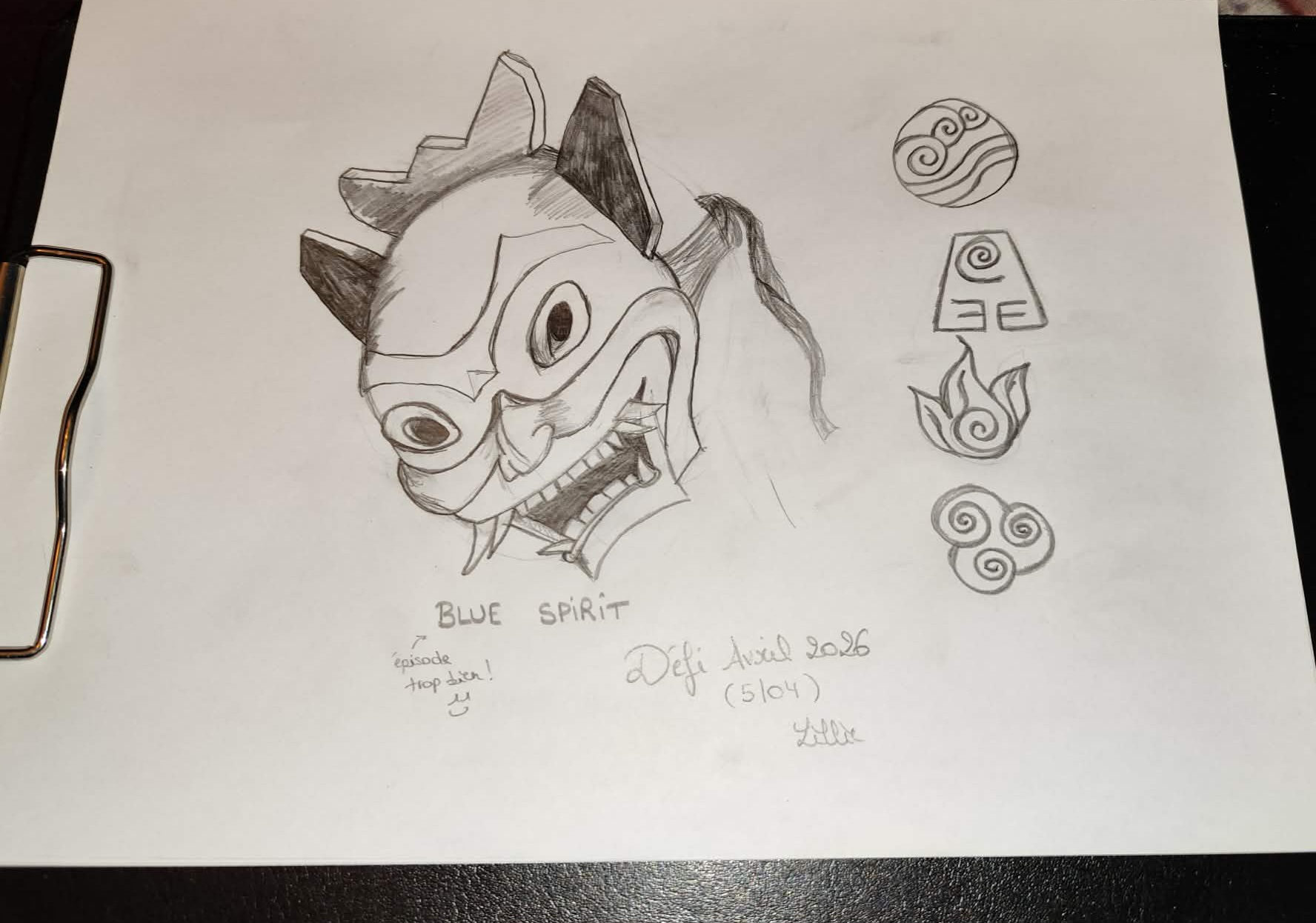 Salut tout le monde ! Pour aujourd’hui j'avais absolument aucune inspiration ^^ J'ai à peine eu le temps de me poser pour dessiner là ce soir. Je suis pas très contente du rendu final (je trouve que ça ne ressemble pas trop à ma reference... mais bon ! Ça fait partie du jeu aussi 😉 ). Bref du coup, voilà mon croquis d'aujourd'hui (environ 20-30min de travail dessus). (Dessin du masque du blue spirit dans avatar the last airdbender pour ceux qui se demandent ^^) --> Episode trop bien d'ailleurs pour ceux qui veulent se faire des petites soirées posées nostalgiques 😅😆). À demain pour un dessin theme plus Paques je pense ^^ -