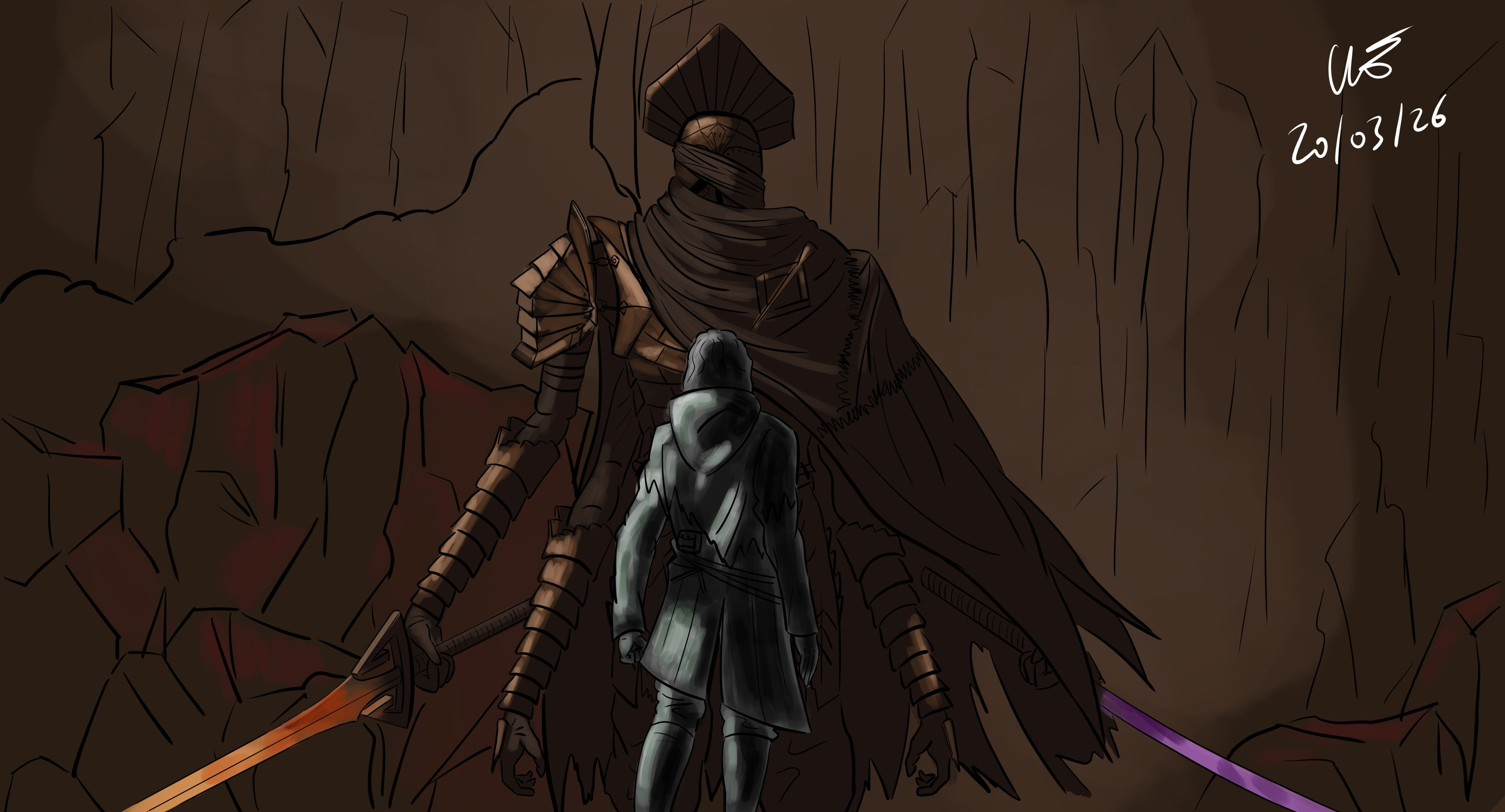 Coucou KYUARE, merci pour ce retour et désolée pour cette réponse tardive, j'étudie l'anatomie en parallèle depuis le début du mois et je n'ai pas vu le temps passer ! En effet, je n'étais pas satisfaite des couleurs des personnages, mais je n'arrivais pas à déterminer d'où venait le problème ! J'ai donc mis ce digital painting de côté quelque temps puis j'ai tout repris au niveau des couleurs pour augmenter le contraste entre les personnages. L'image de référence est assez sombre en général donc j'ai changé les teintes aussi, je ne sais pas si c'est mieux comme cela ? J'ai aussi refait le croquis du décors et ses couleurs qui n'allaient pas du tout non plus à la base ! J'ai joué avec la luminosité du décors pour faire ressortir les personnages aussi 😉 J'espère que le résultat donne mieux ? Merci encore pour vos retours !:) -