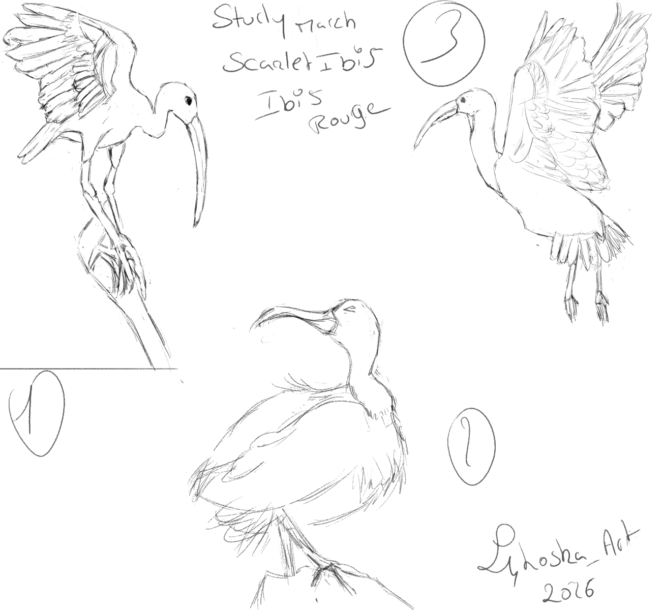 Study du jour 20 Ibis rouge ( je galere de ouf avec les piafs ) j'aime pas dessiner les ailes et pattes -