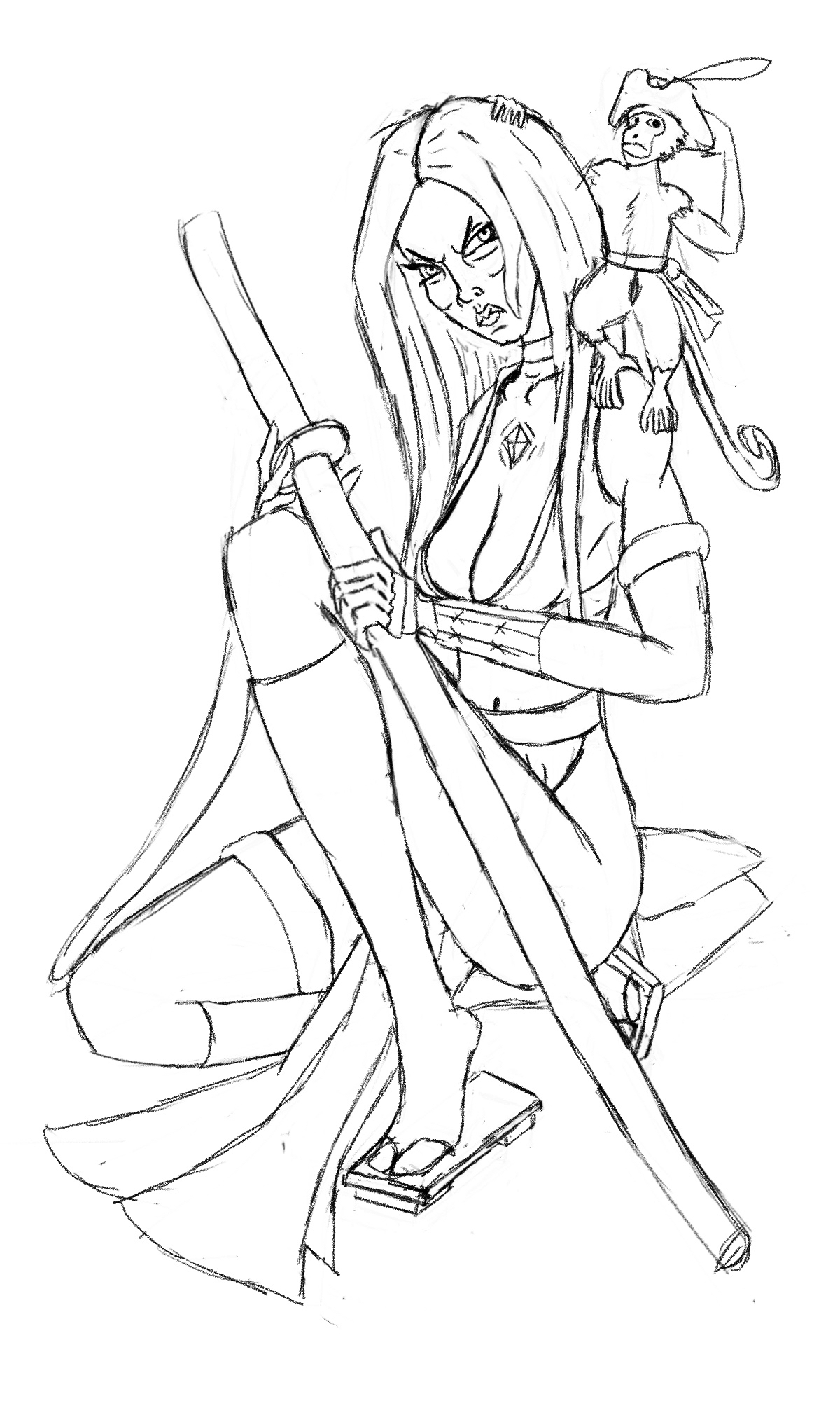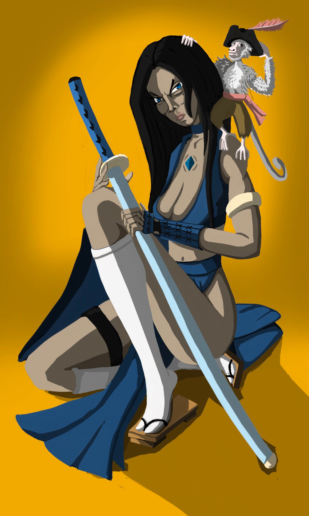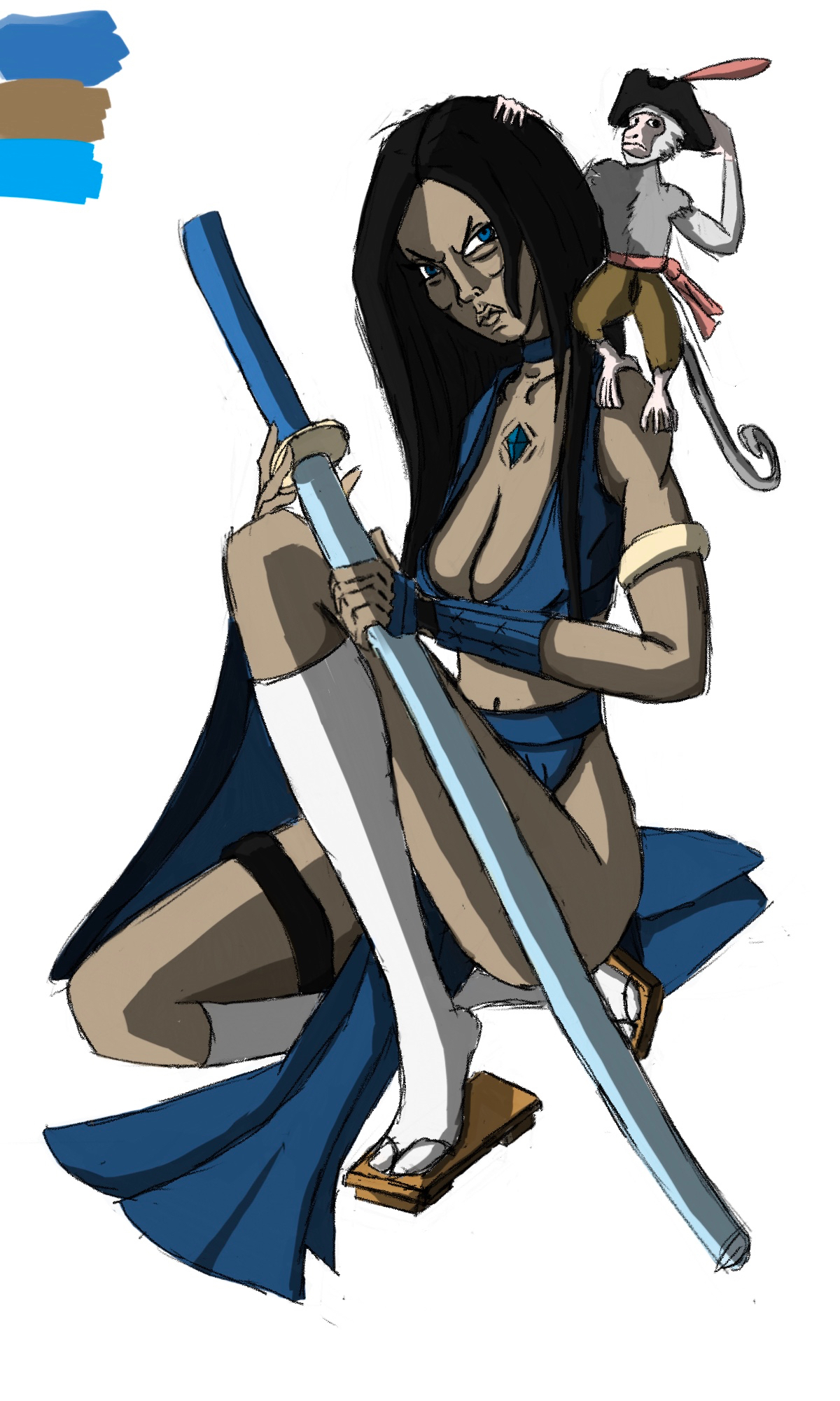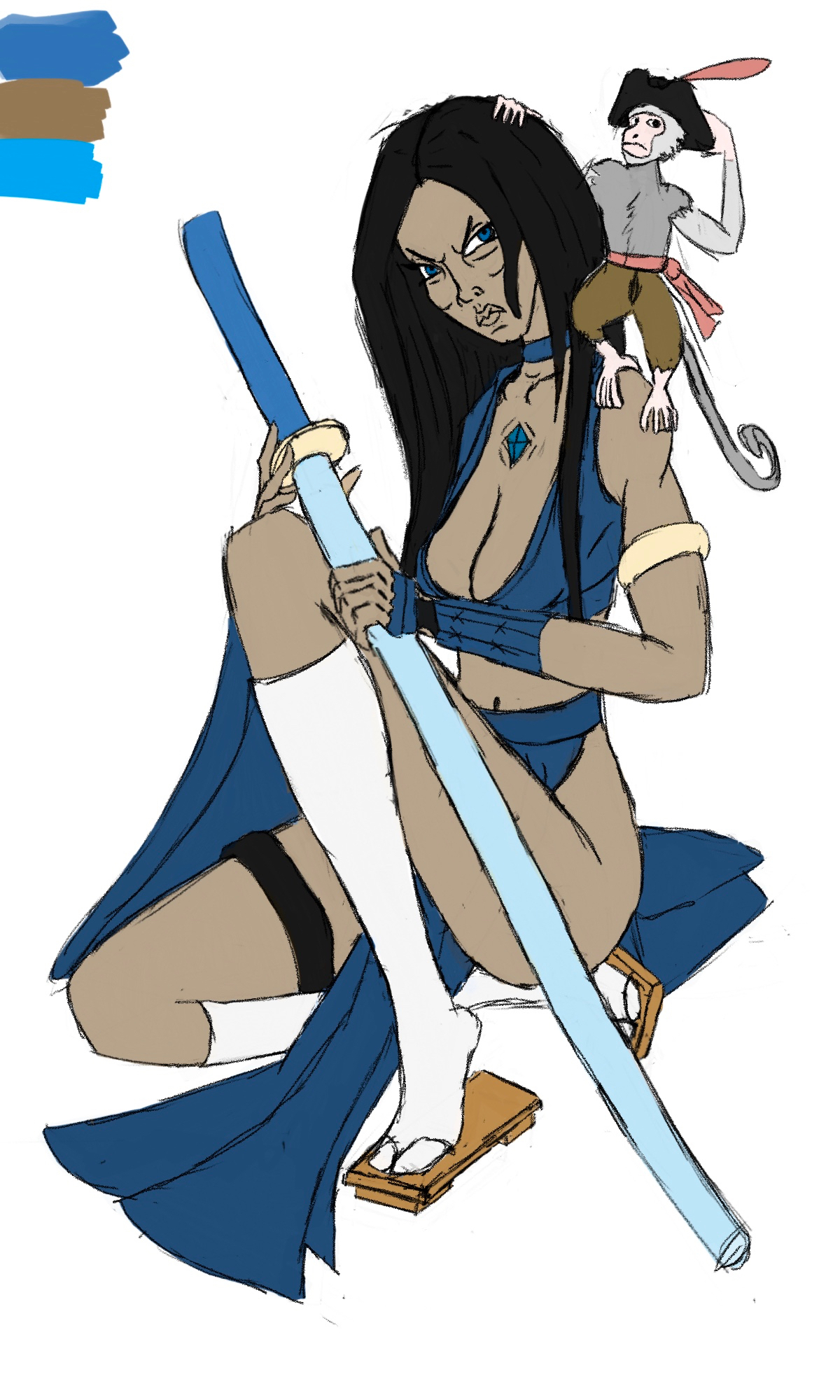 Bon ça fait presque 20j que j’ai rien posté sur mon avancé et j’ai beaucoup a montrer. Déjà la lame que j’avais fait … poubelle. Elle ne me plaisait pas du tout. J’ai donc revus tout le dessin et voici les étapes Brouillon Puis les couleurs, je ne me suis pas compliqué la vie avec ce personnage 😝 Ensuite je bloque les premières ombres pour avoir les volumes Et je retire les traits de brouillon -