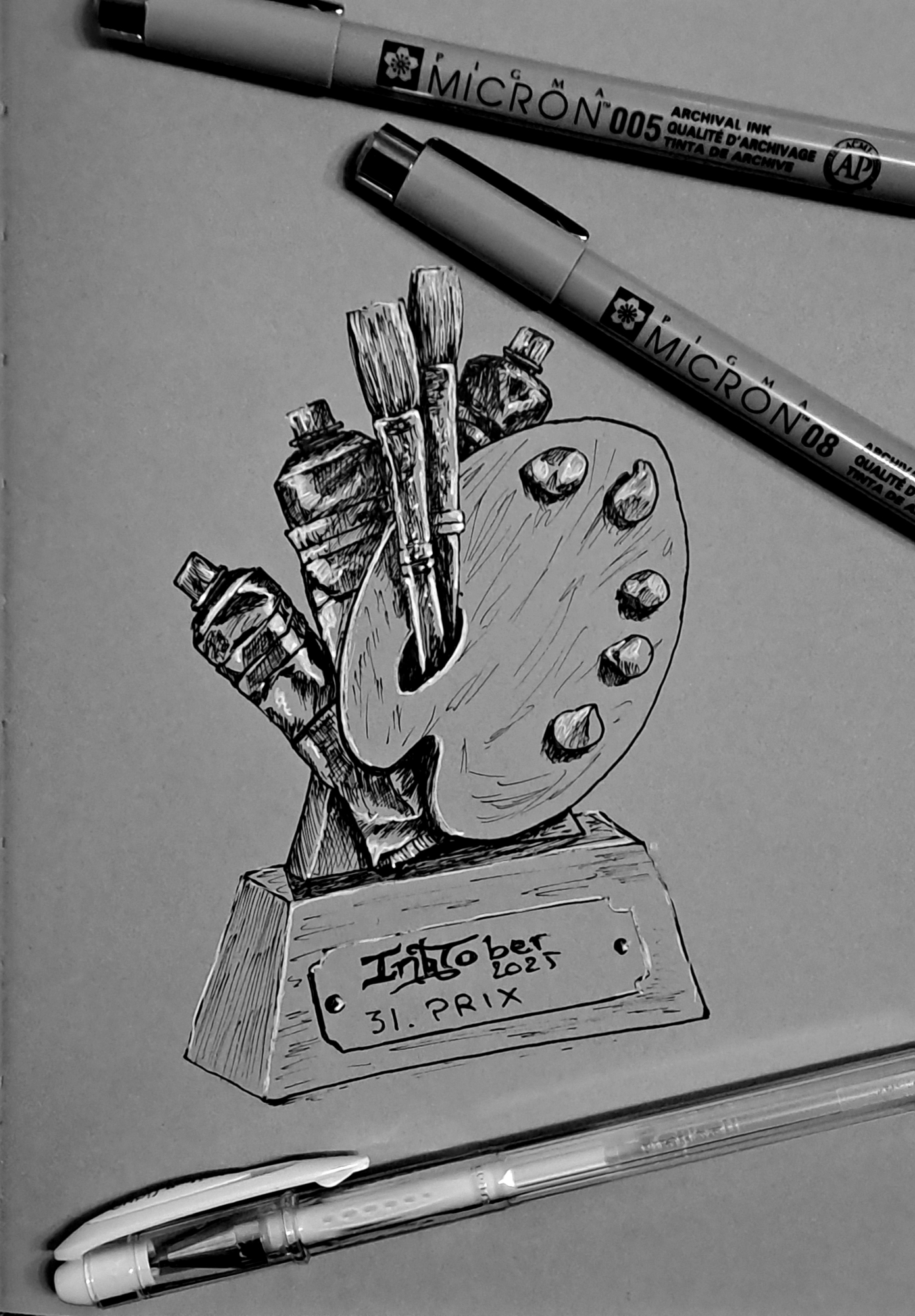 JOUR 31 (DERNIER JOUR !) : Récompense / AwardGopperus a répondu à un sujet de Chaz dans Inktober 2025 Hello! ça y'est c'est la fin...ça va faire bizarre de faire des nuits complètes! En tout cas bravo à tout le monde et merci. C'était vraiment cool de faire ce challenge avec vous!🥲 @Walvynun beau trophée!! @evelynet Bien vu le patchwork de fin de parcours! @Diamones J'espère que ta nièce est prête et qu'elle à une tonne de feutres pour tous ces coloriages! super lining! @ApostroKeLe prix de la guerre, le prix de la paix belle scène et beau story telling @stefouYes! carrément c'est parti pour le challenge! t'as posté des wip? Et pour le dernier..la compétition tout ça.. XD