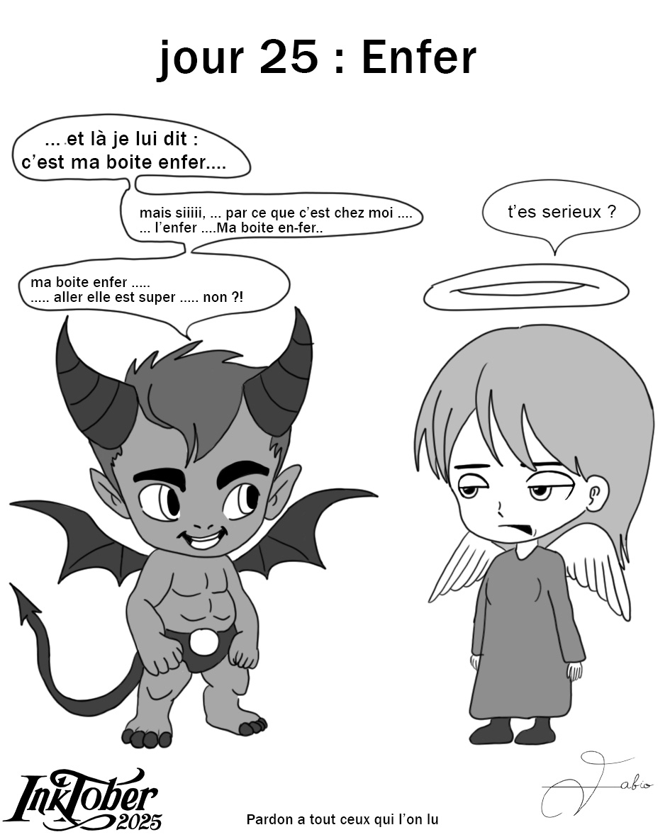 hello à tous, voilà ma participation du jour, je suis plutôt satisfait de celui-ci pour une fois @fabio arf je l'ai lu 😂 @yurinomai trop cool ce dessin ! le feu est vraiment bien je trouve ! @marina_s un chat bien inquiétant ! @oknim7 il a l'air d'être en souffrance 😂 @Diamones il a l'air très sympa ce Cerbère ! @stefou très sympa ce diablotin, j'aime bien l'effet magma sur les vêtements @Gopperus ça change des vacances en Bretagne 😂 @ApostroKe Très sympa, ça change de la vision classique des enfers ! @Image.In.R cool ce dessin, je connaissais pas Jace c'est sympa 👍 @daff très beau Charon ! @fred21 Cool ton dessin, le rendu est plutôt bien je trouve. @yubels c'est abstrait mais très cool je trouve !