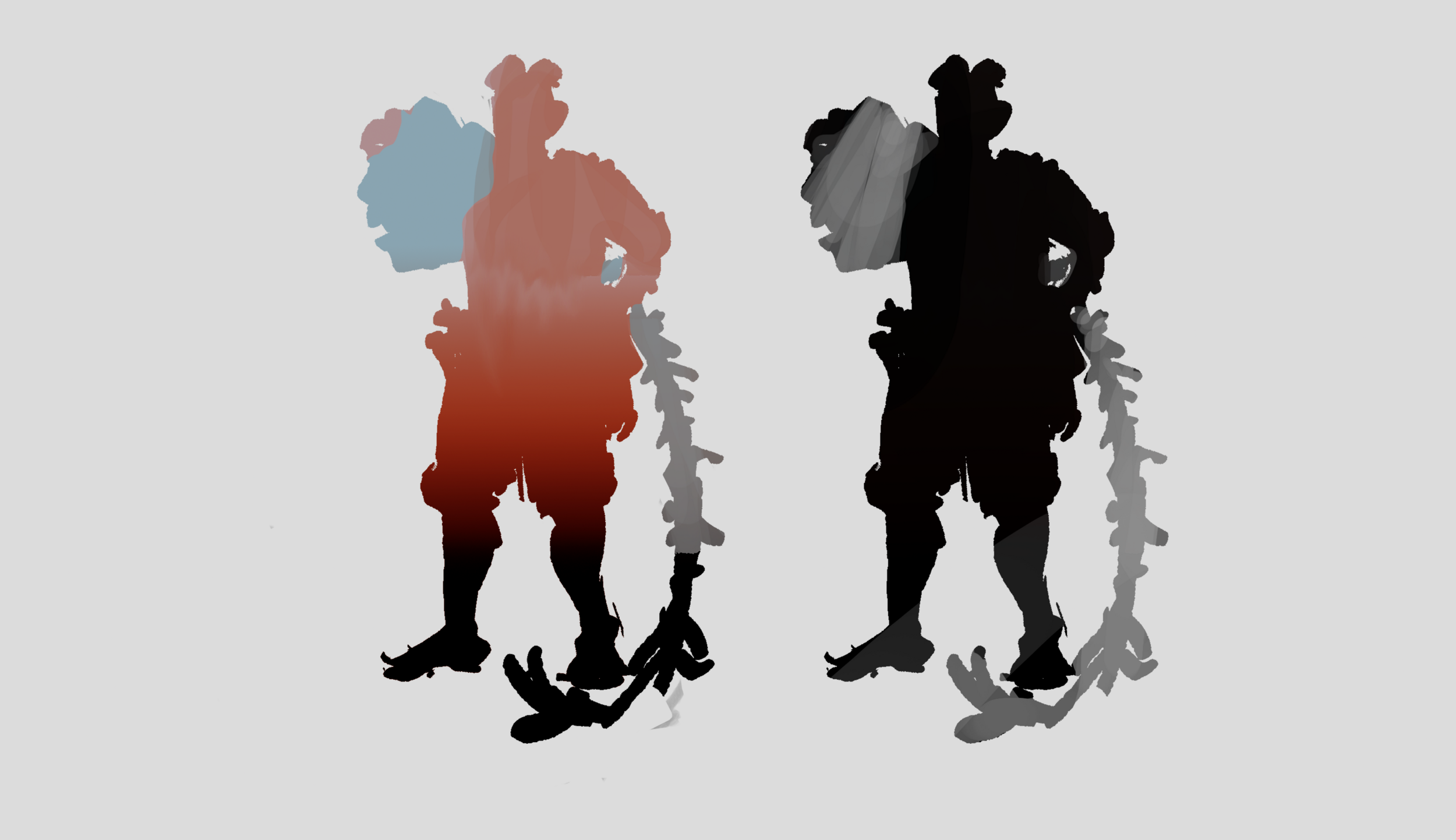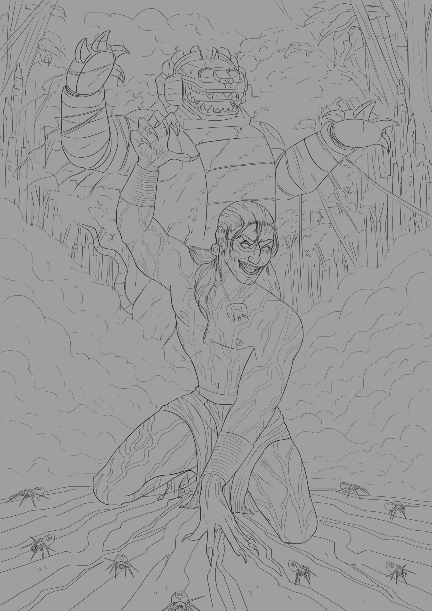Merci @ShozArt! Est ce que c'est mieux ? Voici également mon croquis pour l'exo de fanart et mes intentions (très vite fait) de lumières, c'est Tzekel-Kan de la route d'El Dorado 🙂