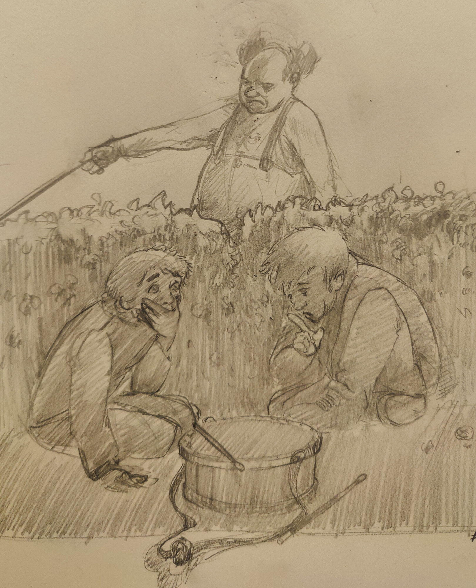 Le premier pirates et celui m’inspire le plus est Long-Nez. Je vous mets mon pinterest d’influence que j’ai utilisé pour l’imaginer : https://pin.it/2pL9Sl1Wx Voici donc le premier croquis pour Long-Nez : Par la suite je vais mettre les premiers aplats de valeur et détaille un peu plus certains bijoux