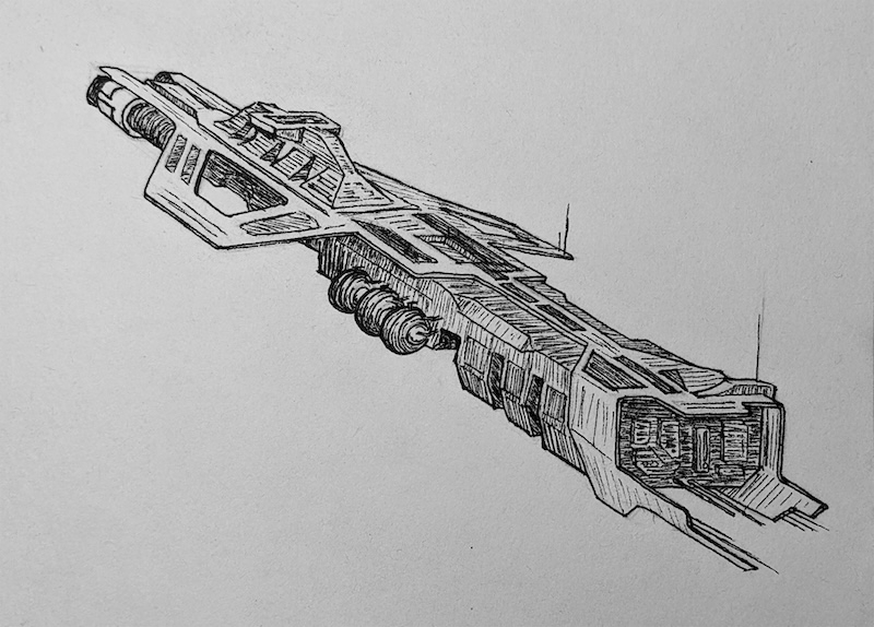 Hello ! Merci @Neuf150 😄 Du coup j'ai quand même essayé de me prêter au jeu et de faire des dessins d'imagination en traditionnel. C'était l'occasion de me remettre un peu dedans et comme ça je pourrai aussi comparer après cette partie 2. Une créature (ne me demandez pas ce que c'est, je ne sais pas ^^) Un autre simple pour tester la pierre noire Et un vaisseau au feutre à main levée (avec un croquis avant quand même). C'est celui qui m'a donné le plus de fil à retordre et je pense que ça se voit ^^
