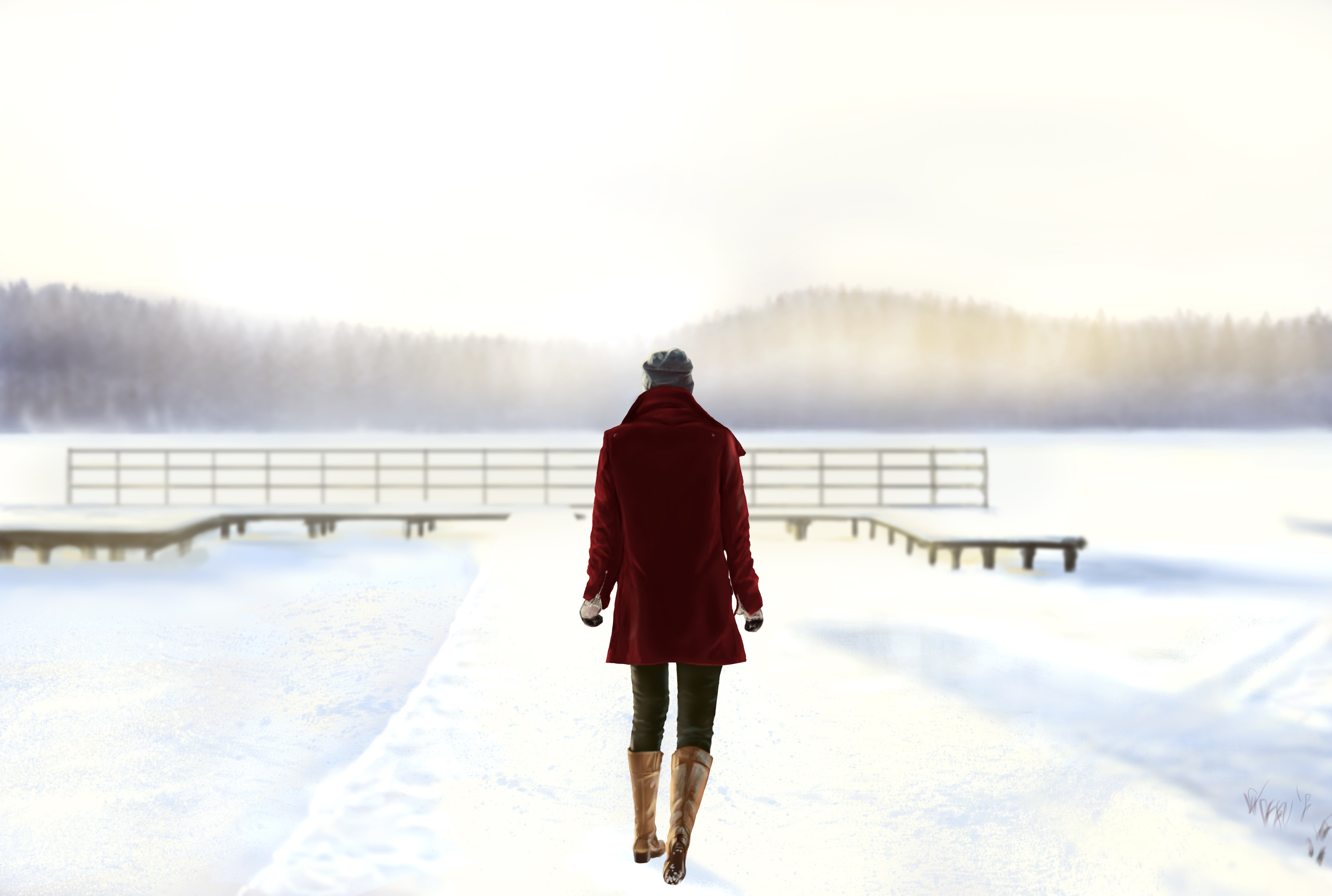 2. Bonjour, voici le rendu de ces 2 exercices. Je suis vraiment tout débutant sur la tablette graphique, ça fait 1 semaine que je l'ai. J'ai donc commencé à me faire la main sur ces premiers exercices Pour le 2,5 je suis parti sur un croquis et des couleurs perso. J'ai un petit peu buté sur la manière de faire les barrières et je me suis concentré essentiellement sur le personnage pour les détails et un peu moins sur la neige en premier plan. Si vous avez quelques conseils je suis preneurs!