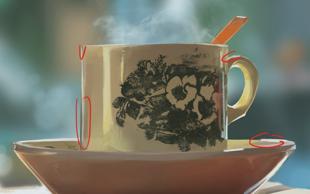 Hello @Ludostudying! Pas mal du tout ta tasse ! ya quelques petits trucs à modifier mais rien de catastrophique. Tu peux booster les blancs sur les traits de lumière Tu peux légèrement éclaircir la surface de la tasse sur la gauche (aussi décaler le reflet sur la gauche également). Un peut clean quelques endroits et on est bon ! Très bien ton poivron ! Juste à baser le reflet bleuté + en bas sinon c'est propre ! Et pour ta branche, à part mettre un petit coup de booste avec un calque incrustation sur les zones éclairées de la branche c'est nice ! Bon courage !
