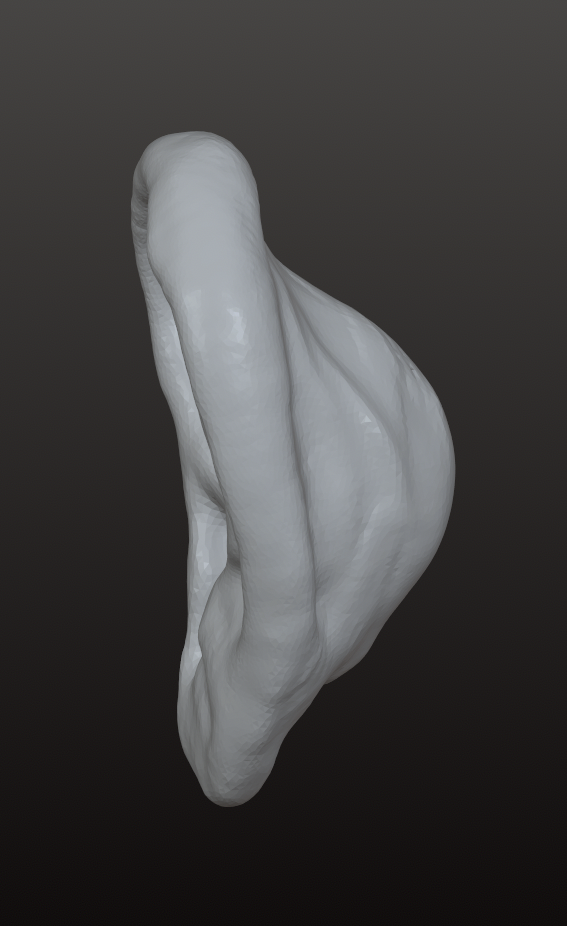 Hello et bon retour ! Vraiment sympa ce petit monstre ! Seule petite remarque concernant la rim light bleue, plutôt que de faire tout le contour droit, essaie de prendre en compte les zones où la lumière va être masquée, le bras ici va projeter une ombre portée sur le corps donc une zone sans lumière. De même, la lumière a une direction donc en fonction du volume l'angle sera différent et la lumière moins forte sur certaines zones. Exemple cette zone qui est dirigée vers le bas n'aura probablement pas de lumière bleue qui parviendra jusque là. De même que si la lumière touche les zones orientées vers le haut aussi fortement, elle ne devrait pas pouvoir toucher les zones orientées vers le bas également : . Bon c'est un peu avancé comme notion mais je préfère t'en parler dès maintenant car le reste est plutôt bien géré ^^