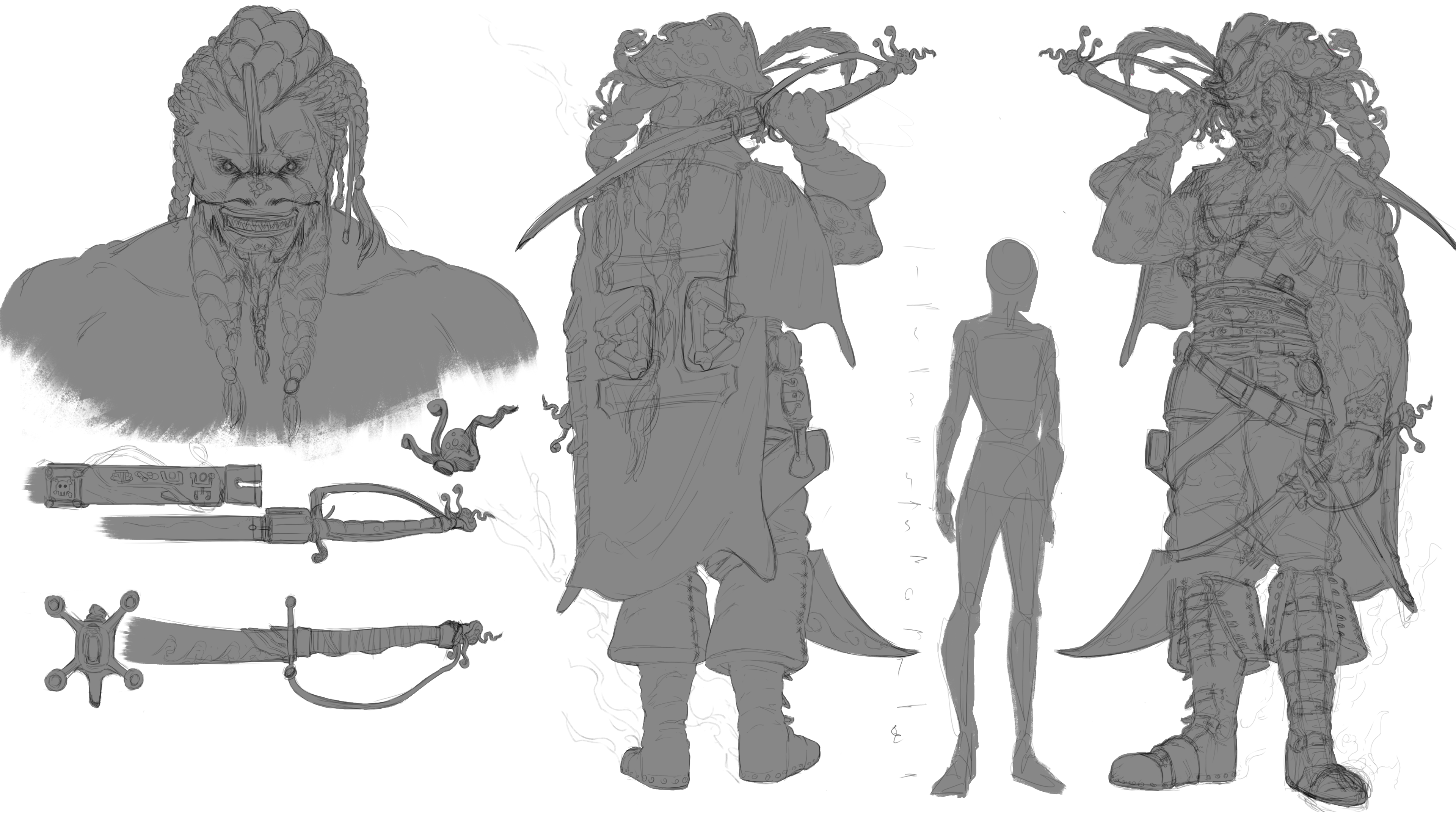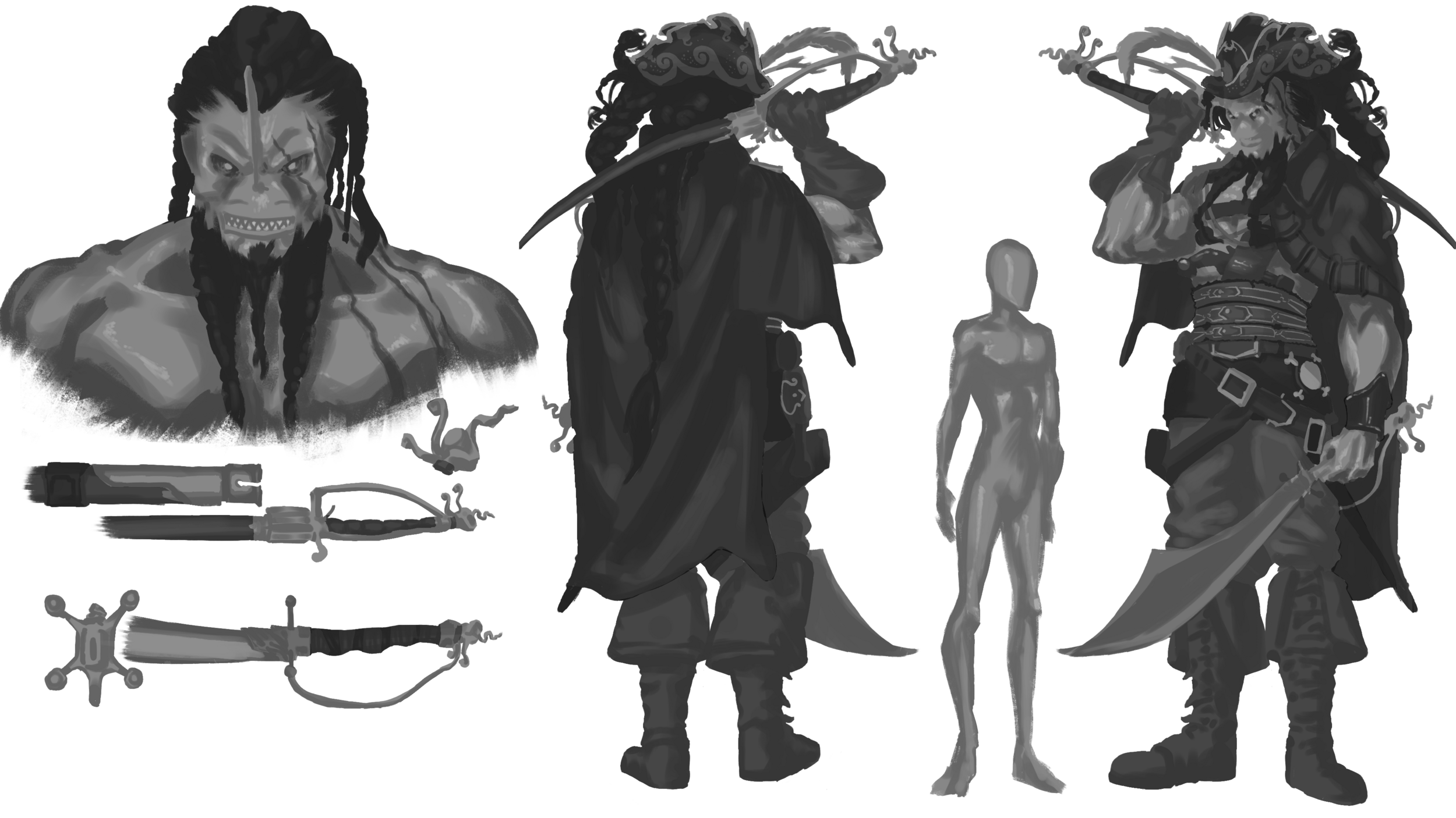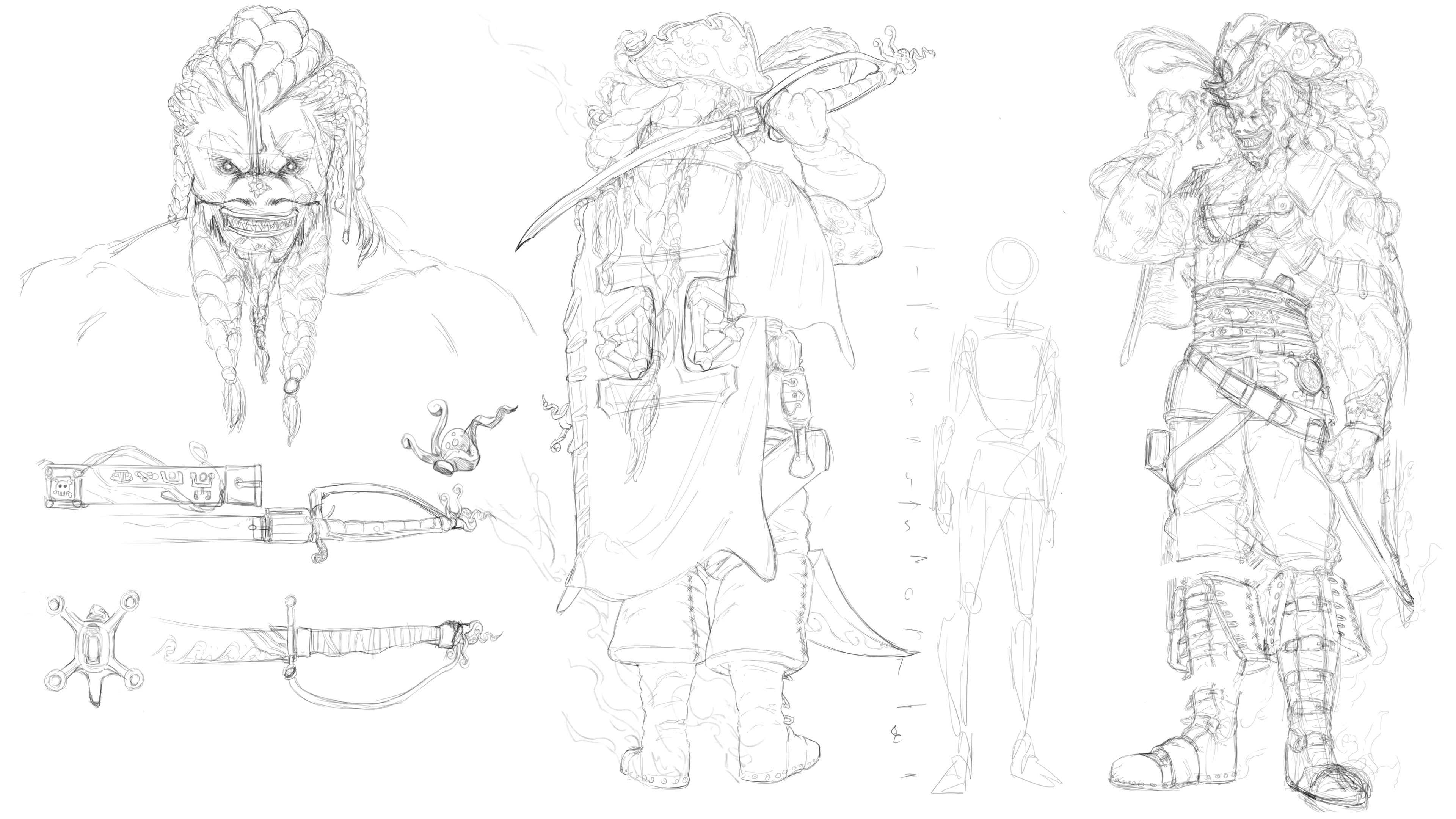 Bonjour tout le monde, Première participation à un challenge je vous partage mon WIP sur ma version du capitaine du black bones j'ai pris quelques libertés part rapport au picth parce que je voulait me faire une idée du perso d'abord avant de faire une illustration complète avec le perso. Toutes remarques et critiques constructives sont les bienvenus Mercii !! -