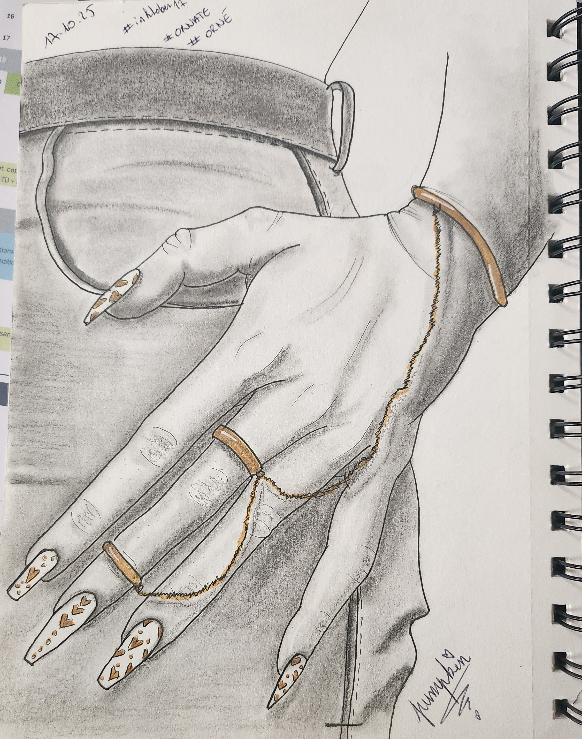 Bonsoir tout le monde, @etiennaze l'effet métallique m'impressionne, bravo ! @Haeresis le trait est si fin et la forme si propre, incroyable ! @oknim7 c'est tellement vivant, top ! Pour ma part je suis partie sur la création d'ornements (mais la position de la main était un peu trop ambitieuse je pense...) Bonne soirée à tous !