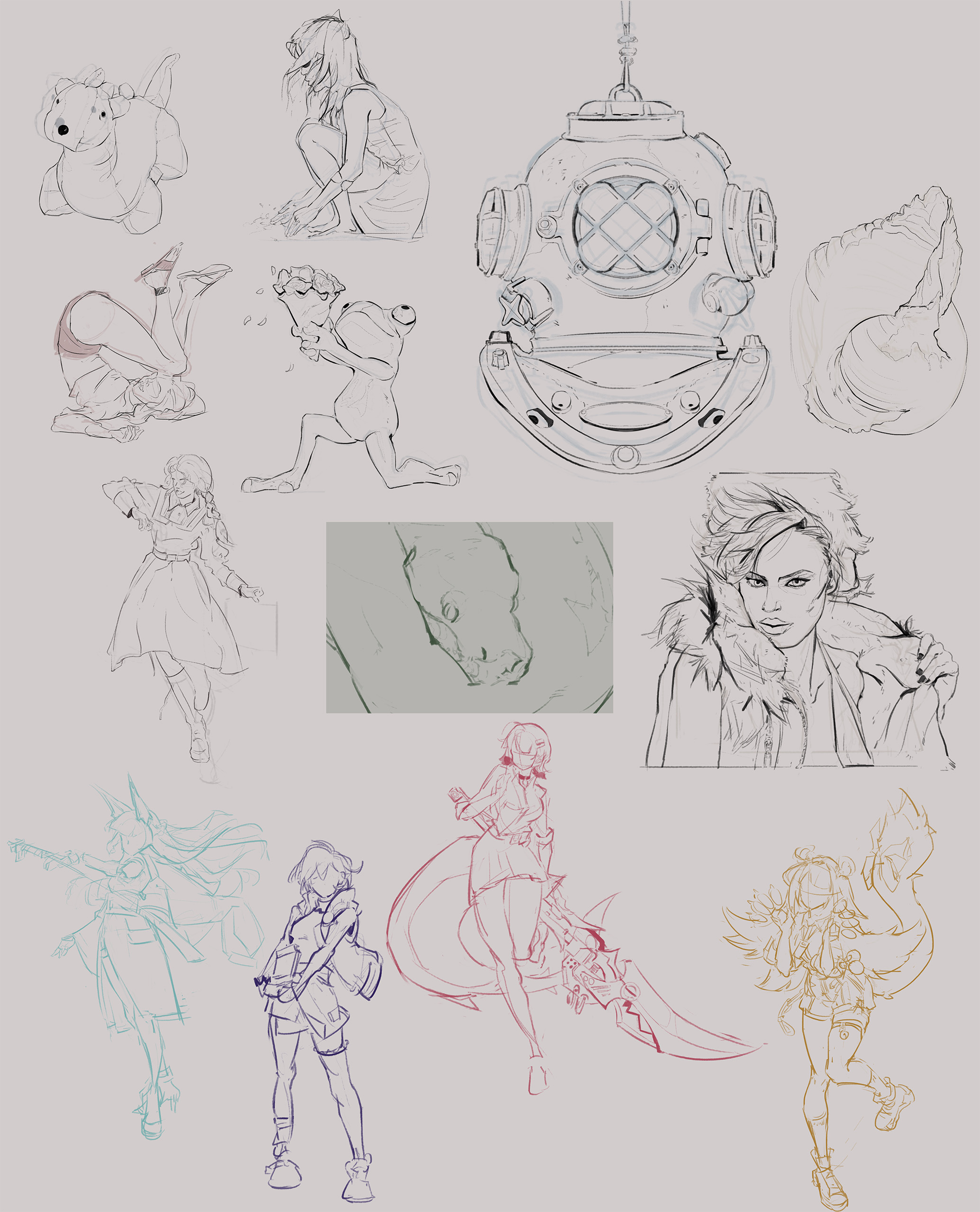 Salut salut, avant de poster mes corrections je vous partage mon avancé sur les etudes a faire en croquis, ça va me prendre un peu de temps vu que je veux toutes les faire en plus d'images que j'ai choisis, donc je vais pas attendre de tout avoir pour poster mais faire petit a petit chaque jours. vu que je fais ma line en deux etapes j'ai laisser sur chaques croquis ma 1ere line pour voir la difference. Je prefere faire des poses et des personnages de jeux que j'aime bien comme vous pouvez le voir mais ne vous inquietez pas je prepare quelque decore s en plus de ceux que spartan a mis a disposition ! voila :D je me permet de laissez l'image en plutot haute resolution pour pouvoir zoomer un peu vu qu'il y a beaucoup de chose, notez que je ferais de belles planches regroupant les travaux de cet exercice a la fin, pour 'instant je fais juste en sorte quye ce soit lisible -