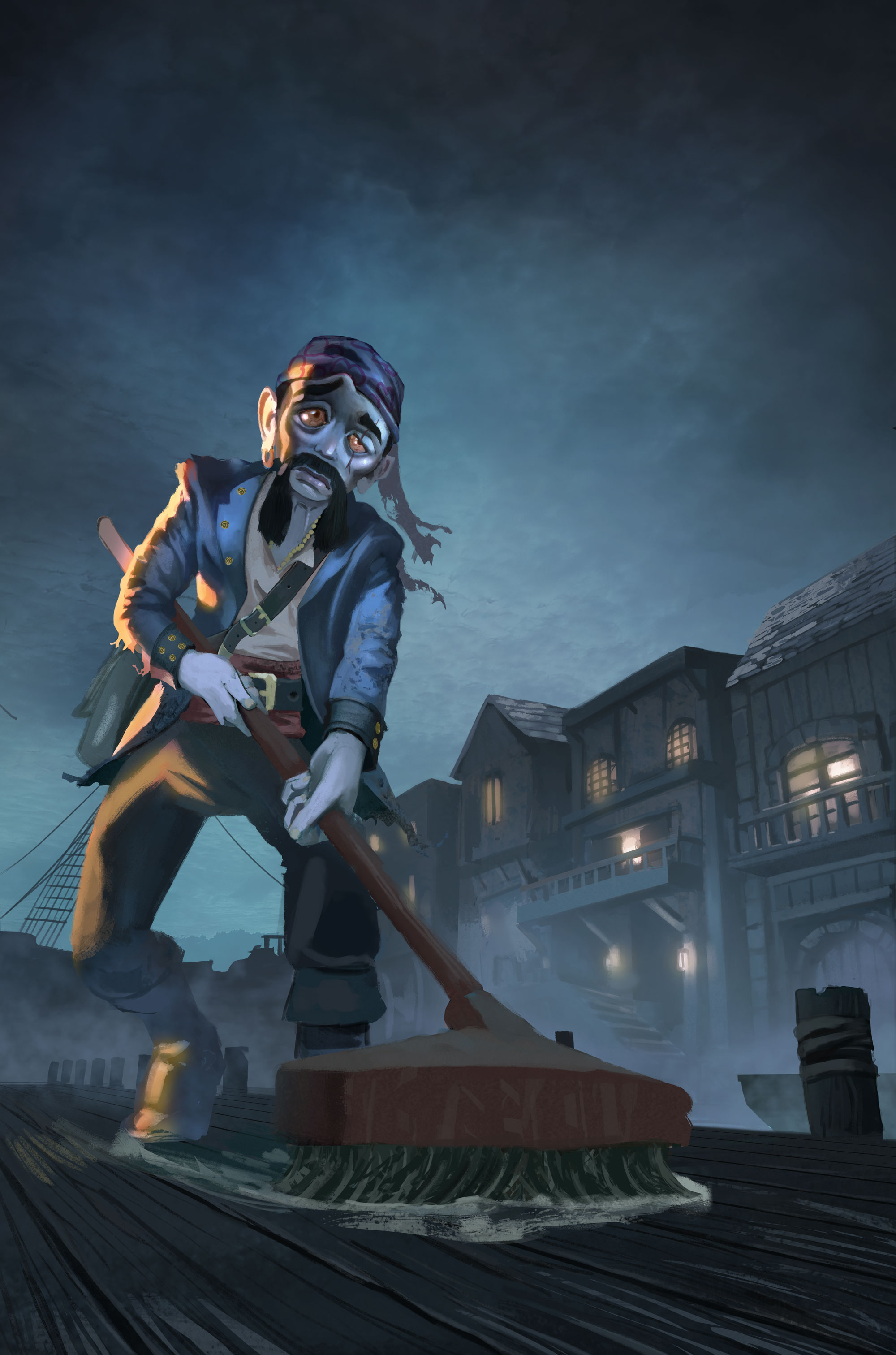 Le rendu du kraken me paraissait compliqué à exploiter. J'ai refait la créature de A à Z et refait la scène en 3D. J'en ai profité pour faire un rendu 3D du bateau pirate. Vu le temps restant, pas le choix, il va falloir aller au bout de ces concepts 🙂 -