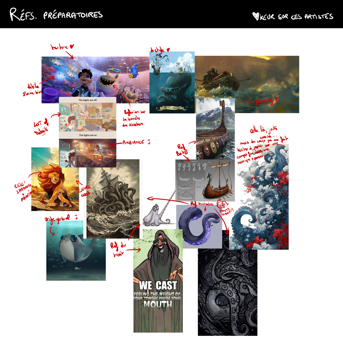 Trop stylé tes recherches! Je suis fan, perso j'aime bien la 3, ça me fait un peu penser au Facehugger dans Alien (l'idée qu'un monstre marin puisse prendre le contrôle en se greffant à quelqu'un) 🙂 Bonne continuation! Hâte de voir la suite!!! -