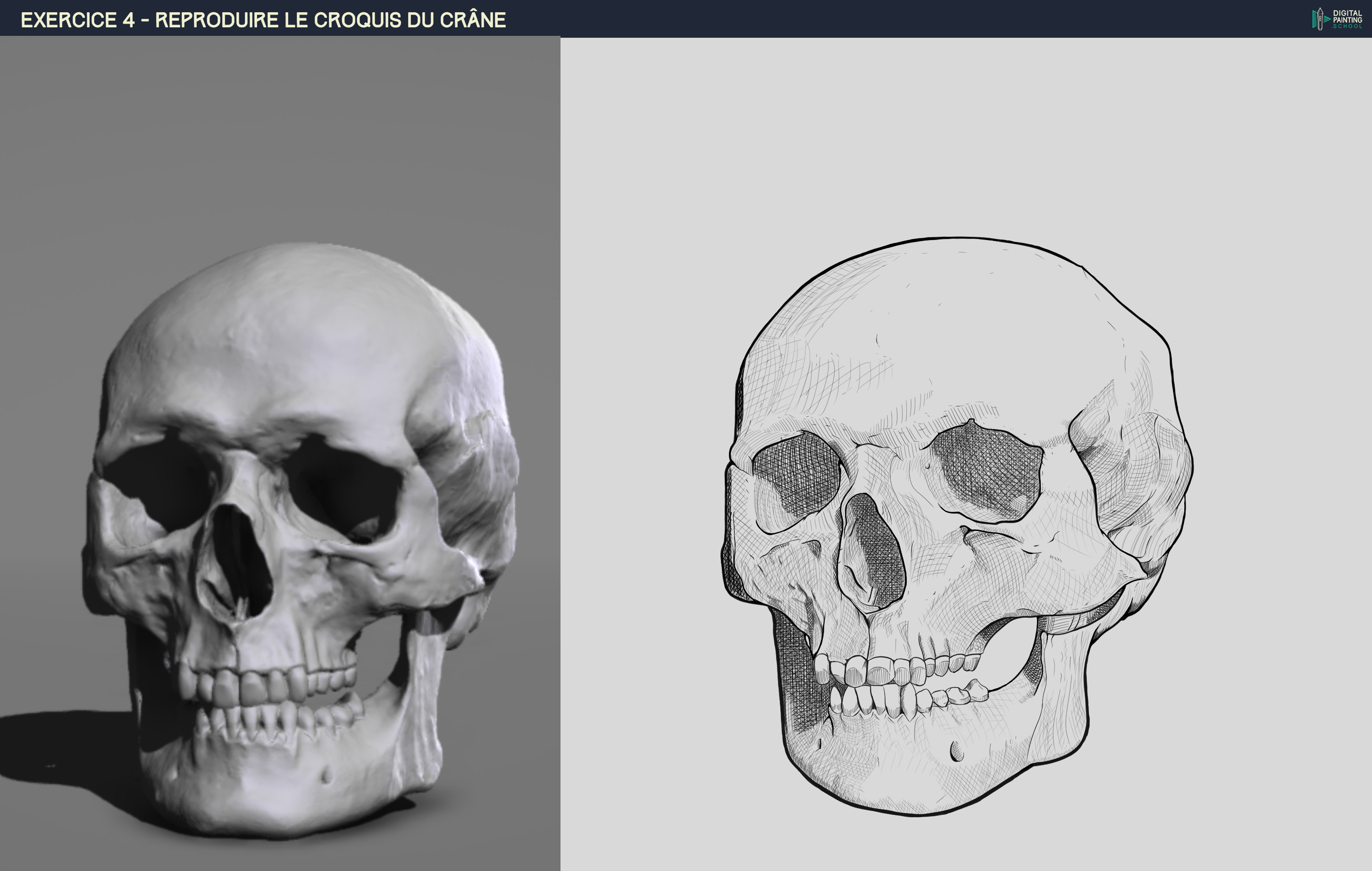 Bonjour, J'ai continué les hachures pour avoir plus de volume pour crâne. J'espère que c'est mieux comme ça, j'ai pas encore l'oeil ultra agéri pour les niveaux de gris.
