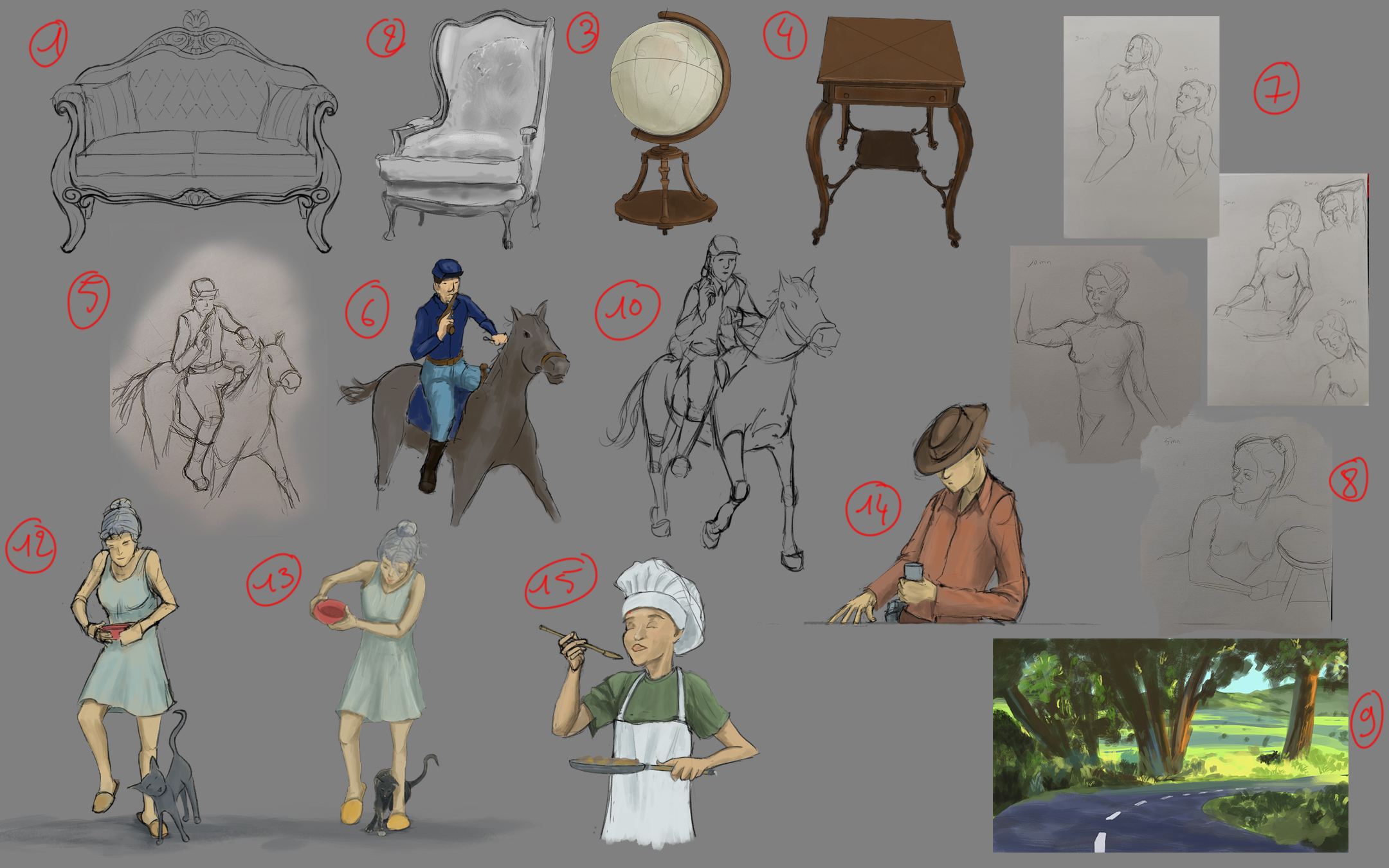 Hello Production du jour 15. D'abord un essai sans ref en gardant les 15mn Et puis avec une ref sur le positionnement de la main droite. Mais en fait ce qui me pose problème souvent dans ce genre de position plus ou moins de 3/4 c'est le positionnement de l'épaule et le prolongement du bras droit. D'ailleurs, c'est la même problématique sur la jambe la plus éloignée sur ce genre de poses. Autant j'ai compris comment on voit le bras et la jambe les plus proches de nous autant je ne sais pas comment ça fonctionne au niveau du bras et de la jambe les plus éloignés. Je ne sais pas trop comment travailler ça, parce que j'ai du mal à trouver ce genre de poses en léger 3/4, et que je ne sais pas pourquoi mais c'est ce qui me vient naturellement quand je dessine un personnage. @ori il me semble que c'est Liane foly jeune. J'ai bon? Bonne journée à tous -