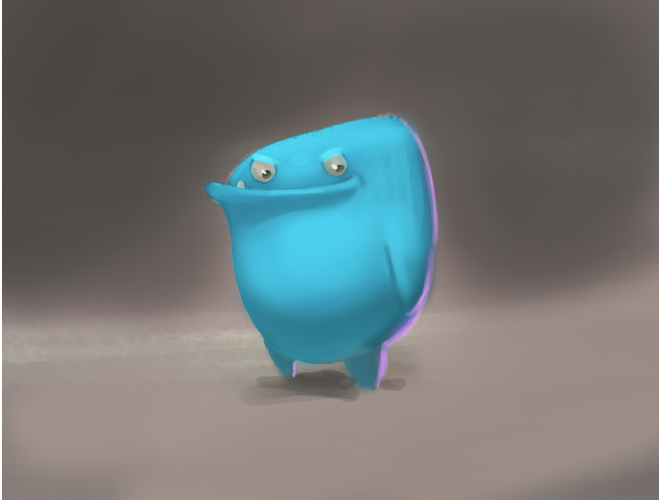 c'est une créature originale ? en tout cas t'as une petite base de compo assez sympa c'est cool ! on voit que t'as exploré l'outil de dessin avec des brush un peu "exotiques" notament pour les effets de bulles, c'est un bon reflexe au debut selon moi? Bien joué et bon courage pour la suite !