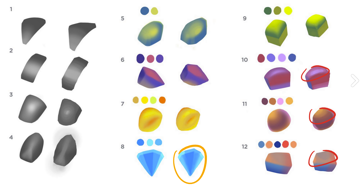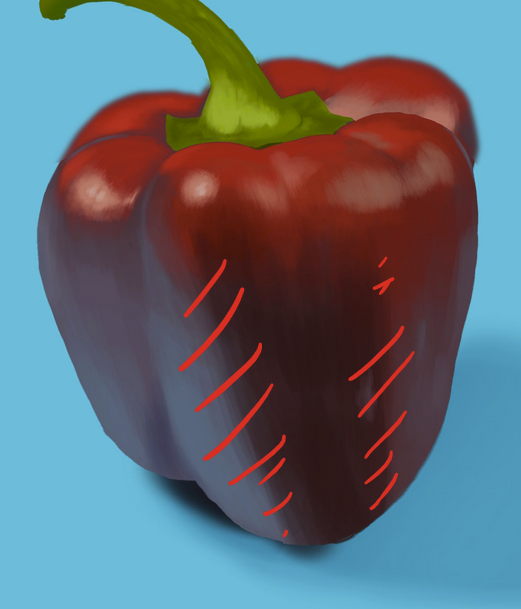 Hello @Lacrymale ! Pour ton premier exo c'est fine dans l'ensemble. Juste quelques coups de bursh qui auaient pu êtres un peut plus blend au soft brush mais pas de quoi se tracasser (ou qui manquait de surface plus dur comme le diamant). Pour des surfaces soft ou faire des dégradé n'hésites pas à faire ça en économisant tes coups de brush. Mieux vaut faire un seul coup de brush sûr plutôt plusieurs petits gestes (je généralise évidemment). Dans l'ensemble de tes studys il y a plutôt une bonne base ! Après oui je pense qu'on pourrait pousser un peut plus parfois. Ta montagne est un bone exemple. on à les surfaces plutôt bien définis mais ça manque un peut de suggestivité dans les détails. PAs besoin de faire un truc de fou, juste des sélections au lassot + coup de brush dedans pour donner l'illusion des textures. Aussi tu peux donner plus d'espace à la montagne derrière à droite. Ainsi que donner un dégradé en haut pour la fondre dans l'atmosphère comme sur la ref. Pour ta rose c'est pareil, la base est bonne mais ça manque de dégradés dans les volumes. Tout ce que t'as à faire c'est garder la plus part des bords nettes et juste mettre du dégradé dans les ombres. Parce qu'en dehors de ça c'est assez clean ! Ya juste parfois des petits bouts noirs qui restent c'est dommage Le poivron est solide bravo ! C'est légèrement synthétisé mais ça fonctionne plutôt bien. Ya juste l'ombre propre qui devrait un peut plus se blend dans les lumières réfléchies en bas. La suite arrive