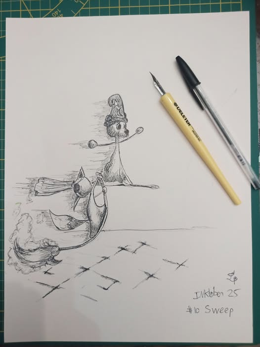 Alors... @Rockenrolla Moi je trouve que le mouvement du balai est bien réussi ! Je suis certain que mon épouse aimerait me voir passer le balai avec autant d'entrain que ton illustration 🤣 @1 neas Voilà un balayage en bonne et due forme ! @juliaBlanchard Ton balai est taupe ! Le chat fait flipper 🙃 @HaptoMai Tu as un beau line, le rendu y est ! @bussi29 Bon choix de film ! 😄 On sent bien le mouvement dans les balais, bon choix que de les avoir mis en opposition 😉 @oknim7 Très sympa ! J'ai l'impression de regarder une BD avec tes perso 😉 @yubels Le balai ne semble pas vouloir sortir de son sot 🙃 @Orel Très joli ton style ! @fred21 Le thème est là et la pose tout à fait lisible, c'est top ! Je comprends très bien ce que tu veux dire avec les finitions j'ai passé un temps indécent sur mon thème du jour -_' @marina_s Simple et efficace ! @Diamones Joli travail de compo comme les autres jour ! @stefou Dis donc pour quelqu'un de pas très inspiré aujourd'hui, t'as bien assuré, ça me fait me rappeler de la tanière de Coco Lapin ( souvenir de vieux ) 😄, au passage le regarde du blaireau est top ! @Image.In.R Sympa comme tout, on se demande tout de même où sont passés les personnages dans les cadres...hmm @daff Haha décidément après ton magnifique Atlas, nous avons encore failli poster la même chose !! 🤣 Je suis ravi d'avoir changé au dernier moment car en plus ton dessin est juste fou !! Superbe vraiment... @Fl0ck0n Très bon rendu ! @ApostroKe Belle maîtrise de la perspective ! @Gopperus Haha excellent 😄 @Julie L Haha t'as raison, c'est de saison...jolie petite sorcière ! On reconnait bien ton style. @Shelter Sympa comme tout, j'aime bien le rendu. @fabio Très bon choix pour une parodie ! 😄
