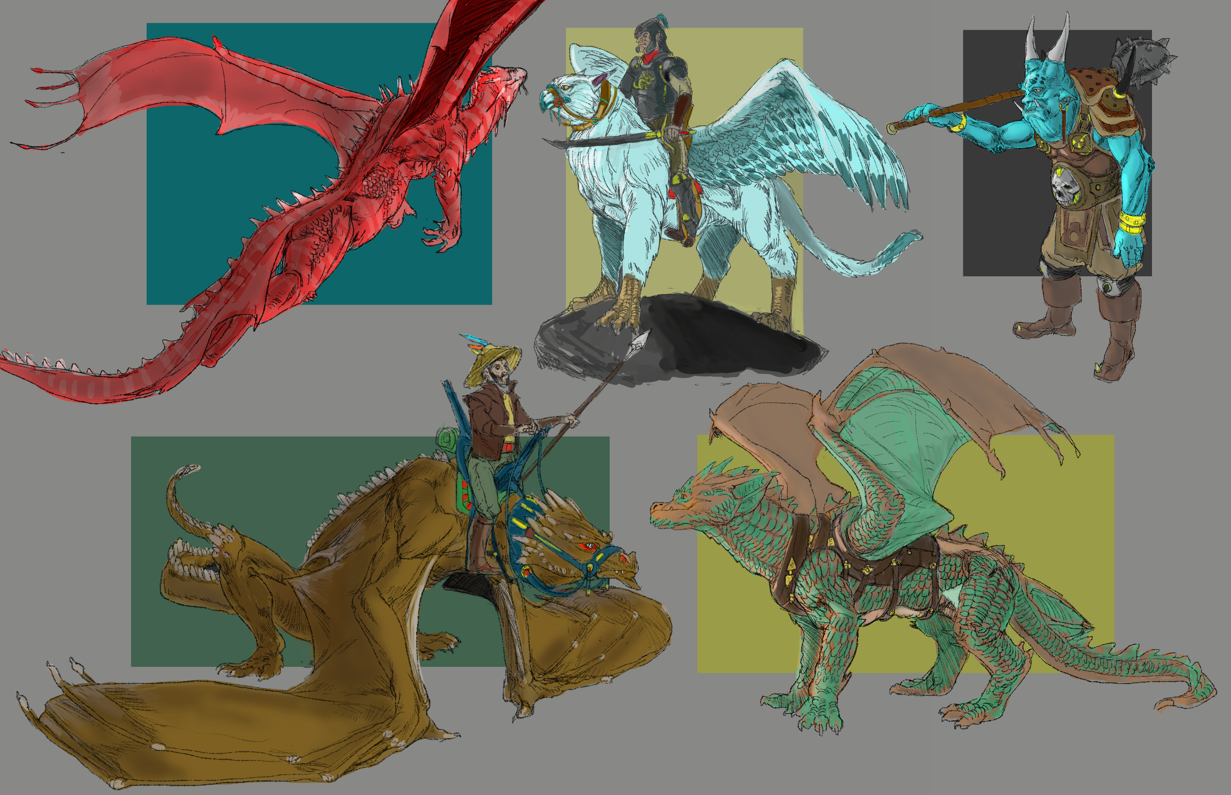 salut la compagnie . quelques designs dont le troll avec les grandes cornes est inspiré de Jeff murchie. une mise en couleur rapide . -