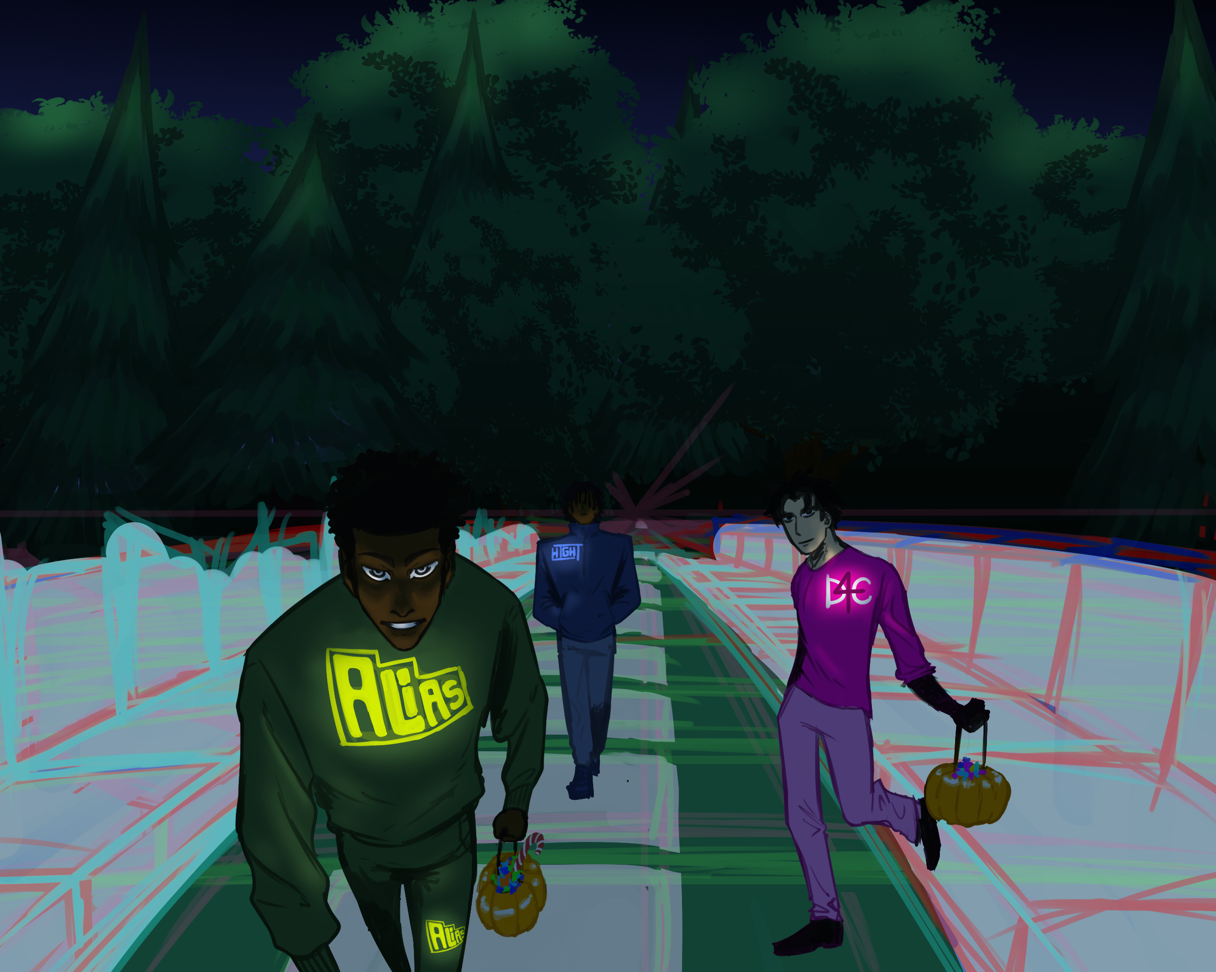 J'aime beaucoup la A et la C ! Par rapport aux options que tu évoques comme lectures de la scène, elles me donnent respectivement l'impression que A = créature surprise sur le fait, mais "plus on est de fous plus on rit 🤭", et C = "je vais tous vous tuer dans d'atroces souffrances 😜". -