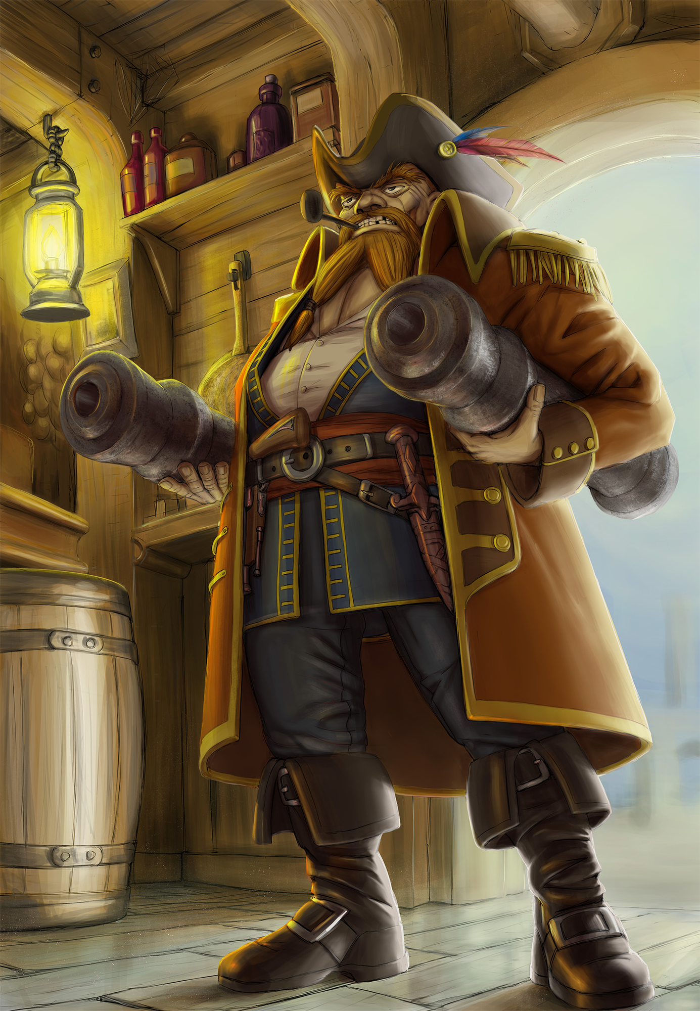 Hello, voici le WIP (rétroactif) de mon illustration de Lame Bleue. D'après son trait "oriental" je me suis assez vite positionné sur un personnage moyen-orient / inde, et j'ai commencé des premières recherches d'armes en travaillant par silhouette, certaines colorées par la suite. Après ça j'ai commencé à réfléchir à la composition. Lame Bleue étant décrite comme une grande capitaine maniant les armes, je suis parti sur une pose de défi. Il m'est assez vite venue l'idée de donner une dague au singe. Puisqu'il l'accompagne en permanence, ça me paraissait intéressant de lui en donner une, qu'il puisse céder à la capitaine en cas de désarmement. Premières idées de compo, je passe au personnage. Même approche que pour les armes, sauf que je travaille moitié sketch moitié silhouette. Ayant une bonne idée de l'apparence du personnage je retravaille la compo. Je trouvais la pose trop statique, et voulais la présenter avec un air plus décontracté pour appuyer le fait qu'avec son expérience, le défi qu'elle lance est insignifiant pour elle. Un peu plus de détails et tests pour l'éclairage. J'ai d'abord opté pour le premier, que j'ai finalement laissé au profit du deuxième après un changement de direction dans l'illustration. A partir de là je vais beaucoup travailler en itération, avec des calques que je duplique, puis fusionne une fois satisfait, ce qui fait que j'ai plus trop accès aux étapes initiales. Dans les grandes lignes : Détails du décors, du personnage, lumière... Je parlais plus haut d'un changement de direction : le pont du bateau me paraissait vide, peu intéressant, et malgré des tentatives d'ajouter des cordage et des montants en bois, j'ai pas réussi à avoir quelque chose qui me plaisait, donc je suis parti vers une scène en intérieur, plutôt côté cabine de la capitaine. Une fois arrivé là, s'en est suivi une longue (trop longue...) phase d'ajustements qui m'ont finalement mené à mon illu !