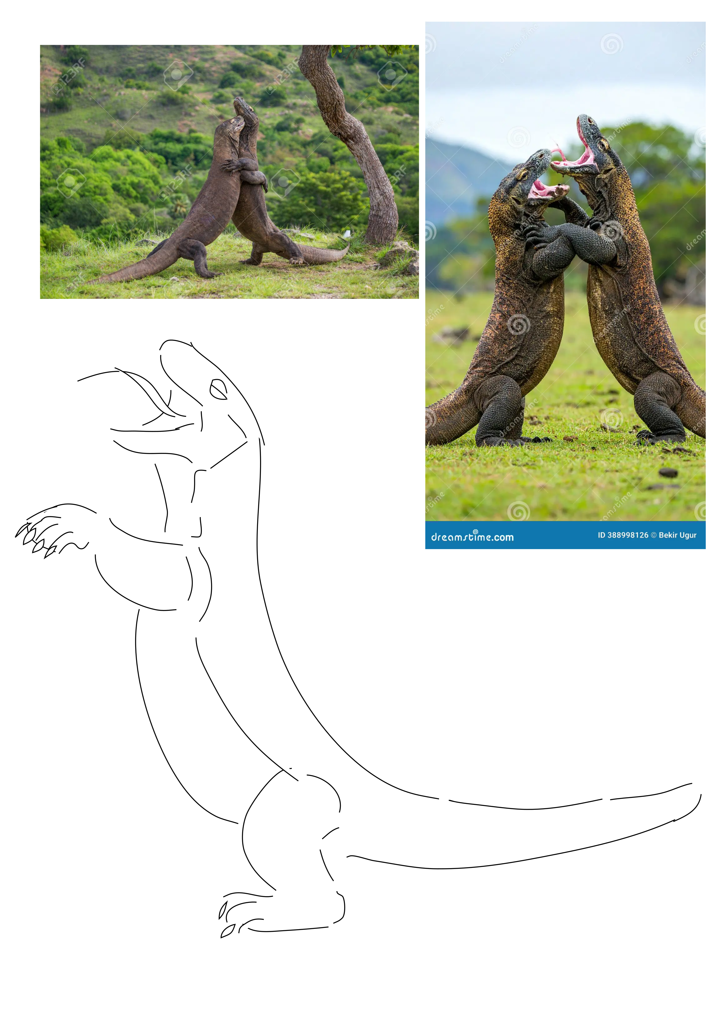 Dragon de Komodo combattant, avec l'outil crayon d'Inkscape, histoire d'essayer de maîtriser mon stylet tout en faisant des traits assez longs et libres. -