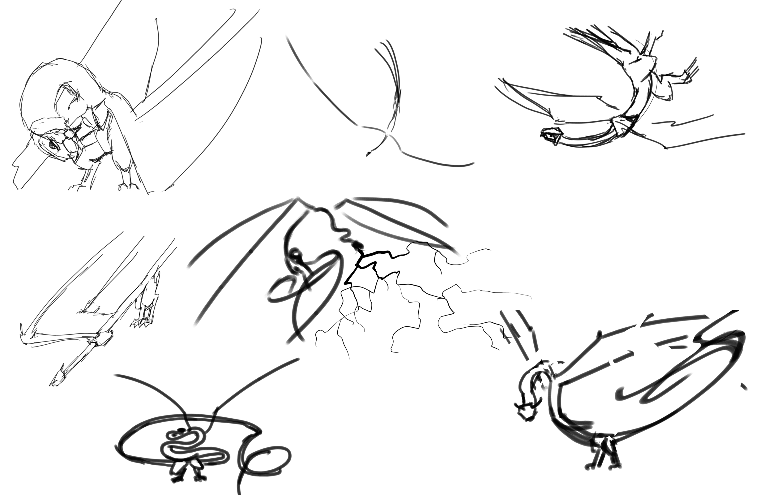 Bon ! Après maintes itérations stériles et frustrantes, je me suis enfin résolu à regarder des réf de dragons (je ne voulais pas, ça heurtait mon orgueil de ne pas réussir à trouver une pose pour un dragon, j'adore les dragons), j'ai fini par trouver une pose stylée ! Par contre, je pense que je vais laisser tomber l'idée de la bobine, je vois vraiment pas comment concilier ça avec un corps extrêmement allongé... Les deux réfs qui ont fait déclic : Et les dernières recherches jusqu'à trouver la pose (celle du milieu) : Le seul problème, c'est que la pose est HYPER classique et juste il crache de la fouder au lieu du feu, ça me gêne... Je vais peut-être continuer à chercher quand même du coup ^^ Edit: Ooooooohhh la nouvelle idée : Il va "charger" son crachat de foudre un peu comme gozilla, mais ça ressemblera à une bobine tesla autour de son cou !! Pour aller avec, je me dis que j'aimerais bien un décor dévasté, genre flotte de navires en feu, atmosphère rougeoyante etc. Ok je pars là-dessus, suite demain, là cerveau cassé.