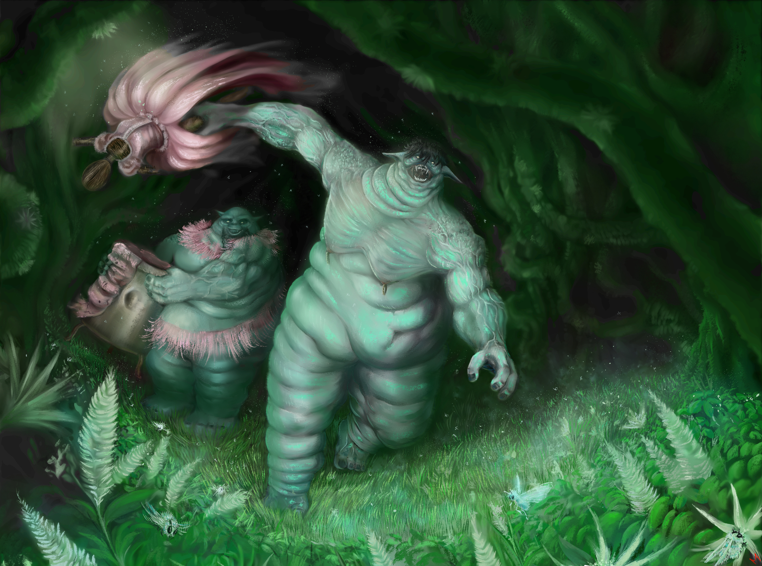 Bonjour / bonsoir à tous, c’est mon premier challenge et j’espère bien apprendre grâce à vos retours 🙂 Avant de commencer, je vais d’abord expliquer le matériel que j’utilise ainsi que ma méthode de digital painting. Je travaille avec une tablette Huion Inspiroy (sans écran), d’une dizaine de pouces. Pour l’affichage, j’utilise simplement l’écran de mon PC portable, qui, je dois bien l’avouer, n’est pas de très bonne qualité. Cela a probablement eu un impact sur le rendu des contrastes, des ombres et des couleurs de mes images. Malgré ce petit handicap, j’ai trouvé ce concours vraiment agréable et motivant à réaliser. Concernant ma méthode de dessin, je n’utilise ni 3D ni photobash. Je travaille uniquement avec quelques brushes, sur le logiciel Clip Studio Paint. D’ailleurs, pour ma deuxième création, j’ai découvert un peu par hasard qu’il était possible d’enregistrer un time-lapse : il y en aura donc un pour le Kraken. En revanche, pour Les Deux Trolls, je n’ai malheureusement que quelques captures d’écran. Ma façon de peindre se rapproche beaucoup de la peinture traditionnelle sur toile. J’utilise très peu de calques, ou en tout cas pas sur le long terme : lorsque le rendu me plaît, je fusionne les calques avec le précédent, et je continue ainsi étape par étape. Ensuite, j’alterne entre des soft brushes, un outil de mélange, et quelques brushes plus texturés pour enrichir la matière. Je n’ai pas de compétences particulières ou académiques en dessin. J’ai simplement toujours essayé de dessiner un minimum dès que j’en avais le temps (ce qui n’arrive pas si souvent), afin d’entretenir, tant bien que mal, mes modestes capacités. Mais malgré tout, je prends beaucoup de plaisir à créer, à expérimenter, et à progresser à mon rythme … et c’est sans doute ce qui compte le plus. Joyeuses fêtes de fin d’année à tous ! Profitez-en bien 😊