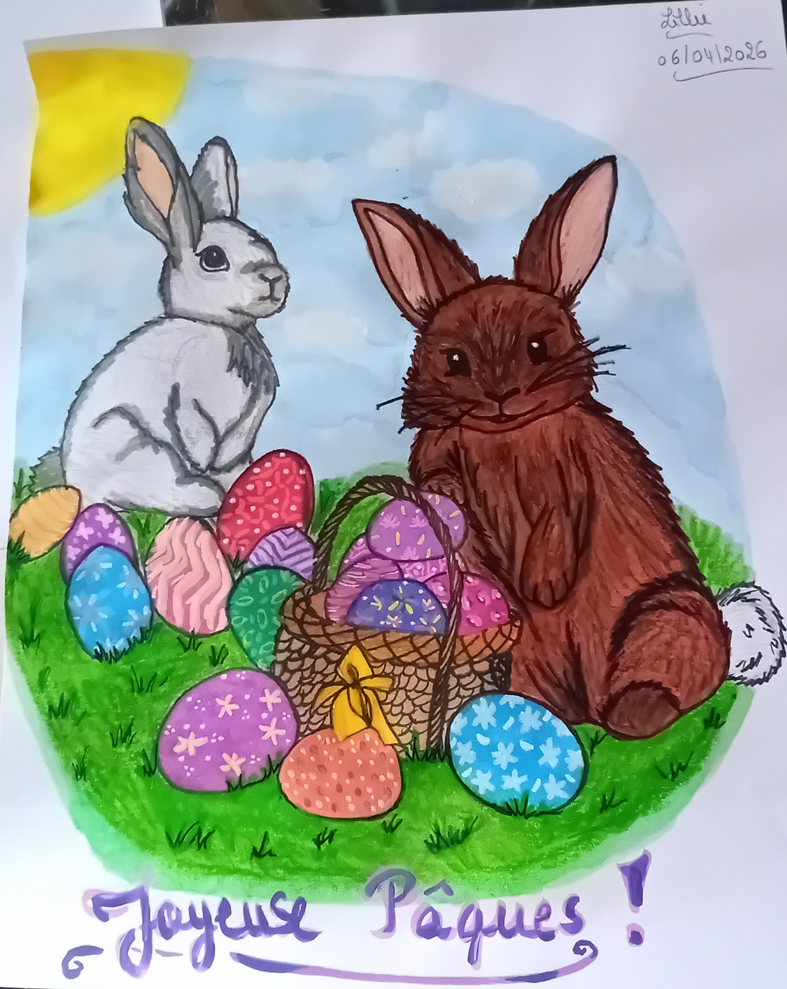Joyeuses Pâques à tous ! 🐇🐰🌸 J'espère que vous avez bien profité ce long week-end 😉 (J'ai un peu galéré sur la mise en couleur de mon lapin donc au final il est bien plus foncé que ce que je souhaitais, mais bon... le rendu final est pas si mal que ça malgré tout ^^) À demain ! Et bonne semaine à tous 🙂 -