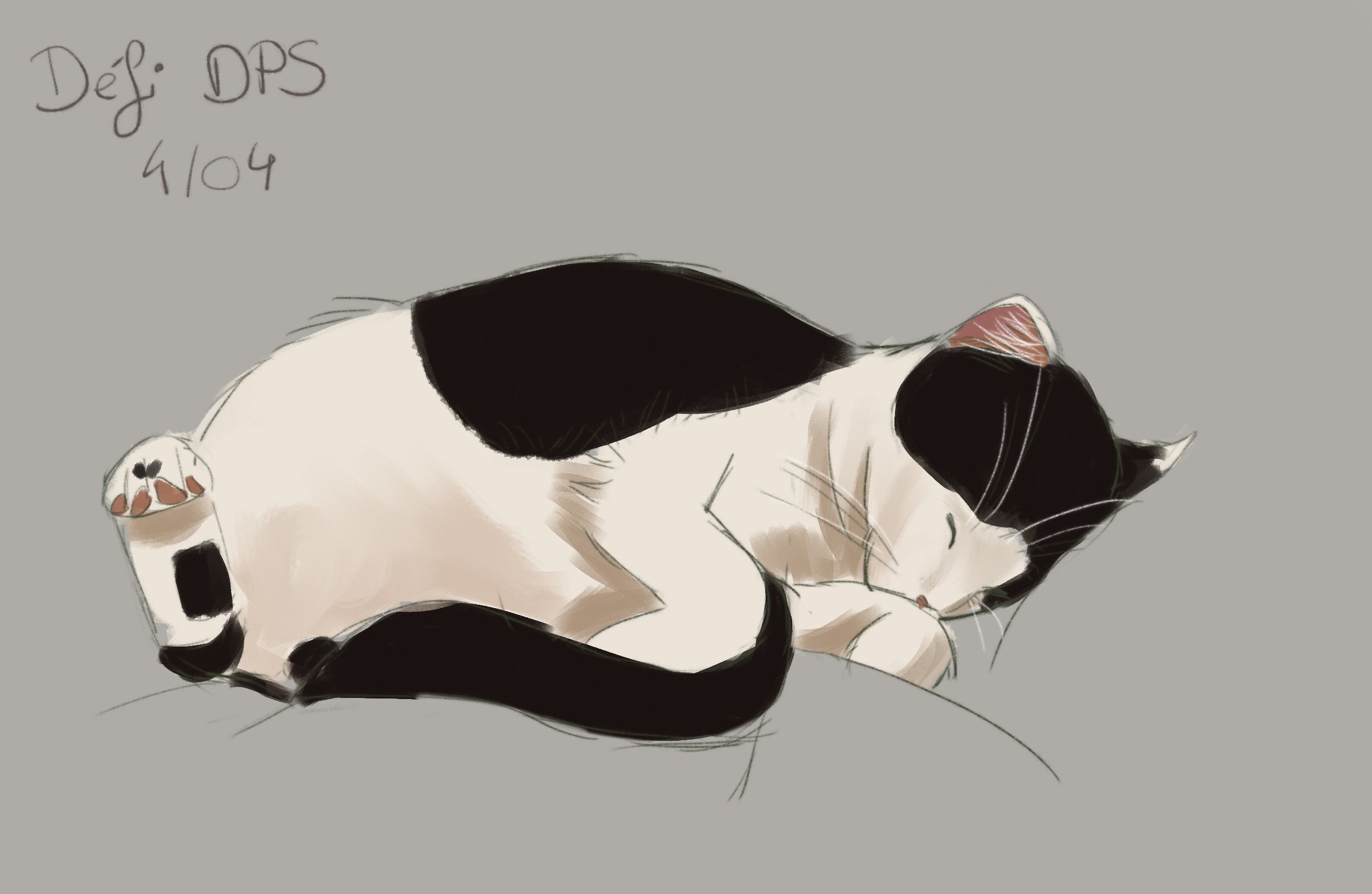 Parce que je serais une mauvaise maman à dessiner qu'un seul de mes chats, voilà le bébé de la maison. Un petit peu plus que 15 minutes mais je suis contente du résultat pour un petit dessin. -