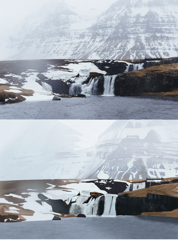 Hello @orangeface123 ! Pas mal ta montagne ! Je pense que tu peux atténuer les contrastes sur la montagne à gauche au loin. Pareil pour le haut de la montagne à droite. Tu peux aussi rajouter des tons chauds dans les "ombres" (c'est la roche, pas vraiment les ombres) à sa base. Sinon pour le reste c'est fine ! eventuellement assombrir légèrement la pelouse brune à droite mais sinon c'est fine ! Ta rose est très solide ! On pourrait juste colorer un peut plus les ombres parfois (atténuer légèrement l'ombre portée sur le pétale tout à droite). Venir respecter un peut plus les lumières sur la feuille pour la définir un peut plus ; Sinon c'est bien ! Bon courage pour la suite !