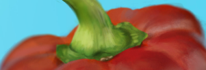 Hello ! Attention au flou un peu trop intense sur le contour. La chair du poivron est un peu trop foncée ici et manque peu être un peu de saturation. Pour la tasse, on a un peu trop d'occlusion sous la coupelle : la ligne de contact au sol est un peu plus fine. Sinon le orange de la touillette devrait être un peu plus saturé aussi. Sinon niveau proportions attention, ta tasse penche un peu sur la gauche Enfin l'ombre est un peu trop forte ici : Keep it up !