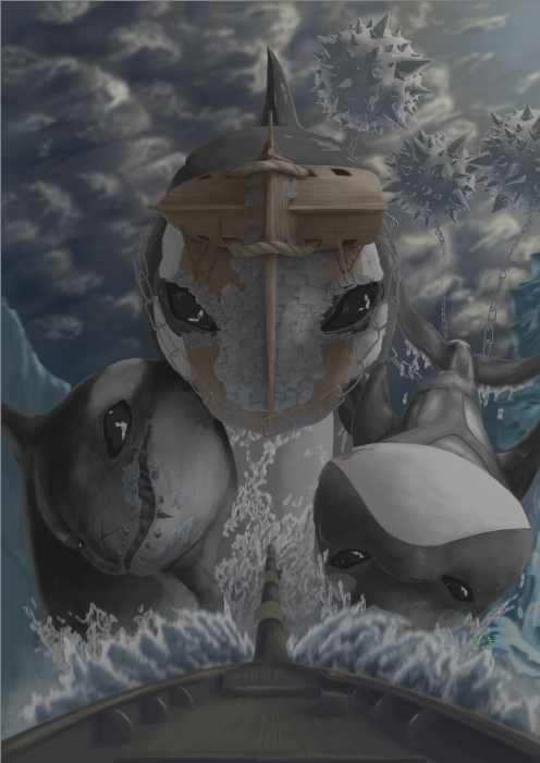 Après encore quelques temp de travaille et de correction, la mise en couleur. J'aime bien le rendu, mais y'a un truc qui me dérange je ne sais pas quoi. Peut-être trop d'effet de flou, ou le fond, ou alors les orques qui ne ce détache pas assez les un des autres.🤔 -