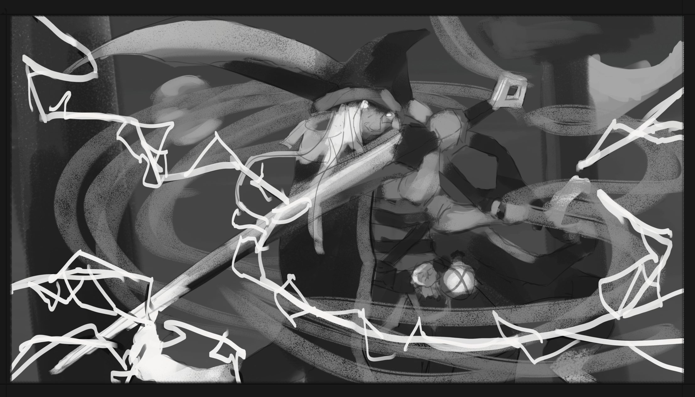 Merci beaucoup ! 🙇 Finalement j'ai pas beaucoup plus poussé le rendu, j'aime bien quand il y a du contraste dans le niveau de détails, avec un visage détaillé et le reste un peu plus rough 😀 Voilà ce que ça donne : (et j'aurais peut être le temps de faire Lame bleue du coup) -