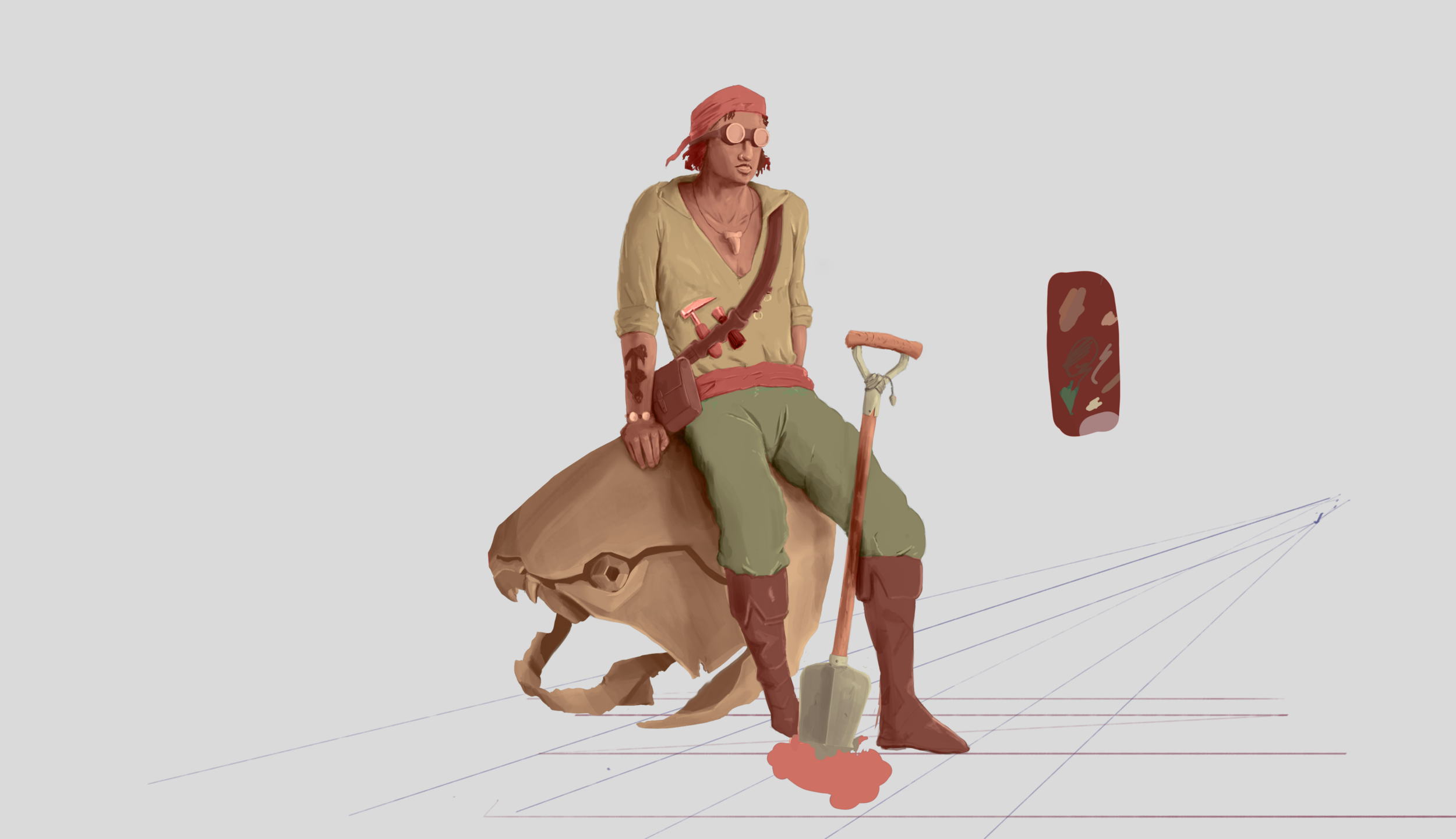 Tu as eu raison, je trouve que ça rend mieux. par contre, la lumière est dans le dos de Long Nez donc son torse devrait être plus ombragé que ça. j’aime bien l’ambiance de fond de cale