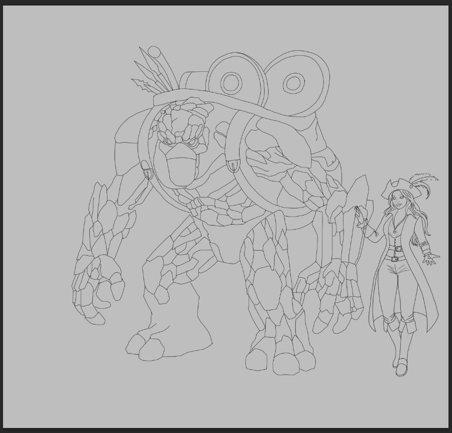 Tests, de couleurs, wip, croquis etc.. Je me suis beaucoup amusée à créer et trouver le design de Ned, je l’imaginais un peu comme un mélange de Viktor et Silco dans Arcane. j’ai travaillé un props de machine à bras mécaniques qu’il a dans le dos pour l’aider dans ses fouilles archéologiques et ses études. Je partage aussi quelques screenshots du timelapse de mon concept art ainsi que le premier croquis.