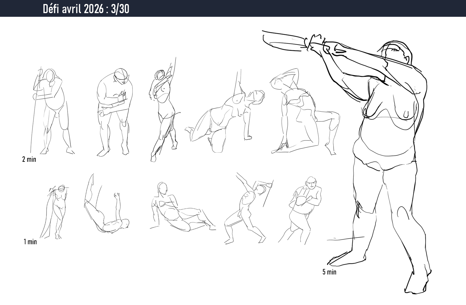 Hello, voilà ma petite participation de 15 min sur plusieurs croquis d'une scène d'action, avec plusieurs personnages, perspectives dynamique, angled de vue différents, scène de combat... 🙂 -