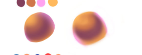 Hello, Oui tes réglages du stylet normalement sont toujours actifs et les mêmes mais tu peux avoir différents réglages de brush, flux/opacité notamment qui vont changer la pression nécessaire pour atteindre un niveau de remplissage complet. Alors les 2 dernières formes en bas à droite ? Ici l'effet de lumière orange par le bas est juste un peu trop fort, tu peux reprendre du marron pour recouvrir un peu du orange, en fait c'est juste une question de dosage. Là le vert clair est un peu trop fort, tu peux utiliser une soft brush un peu plus large avec le vert foncé pour atténuer cette transition un peu trop rapide. Même chose ici ou la transition est un peu trop nette entre le violet et le gris. Rebelotte ici, donc en gros n'hésites pas à changer la taille de ton brush aussi quand tu utilises un brush soft celui de droite là. Si tu réduit la taille tu auras mécaniquement des bords plus nets. Il faut bien sûr aussi jouer sur la pression comme indiqué précédemment. En appuyant légèrement sur ton stylet ou en baissant le flux ou l'opacité tu auras un meilleur contrôle par petites touches et des transitions plus douces plus facilement. Keep it up!