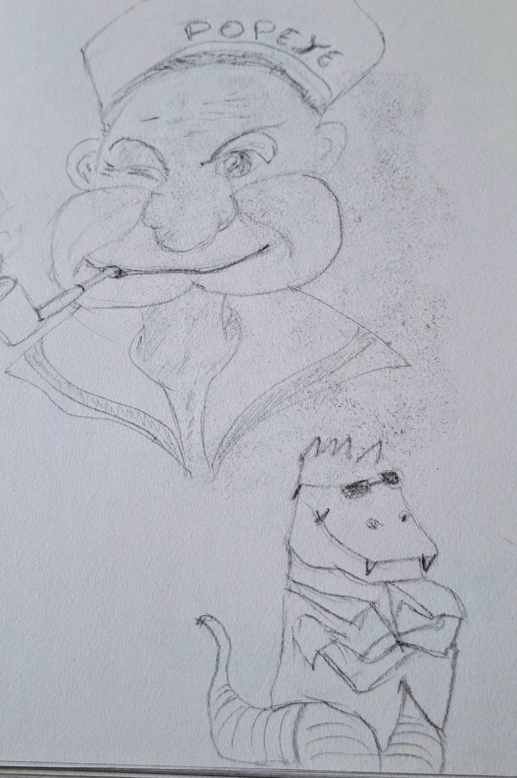 2. Bon 24 eme jour a tous, aujourd'hui j ai tenté un popeye et un petit dinosaure pour finir mes 15 minutes avant le taf bonne journée a tous vivement ce soir 🥱