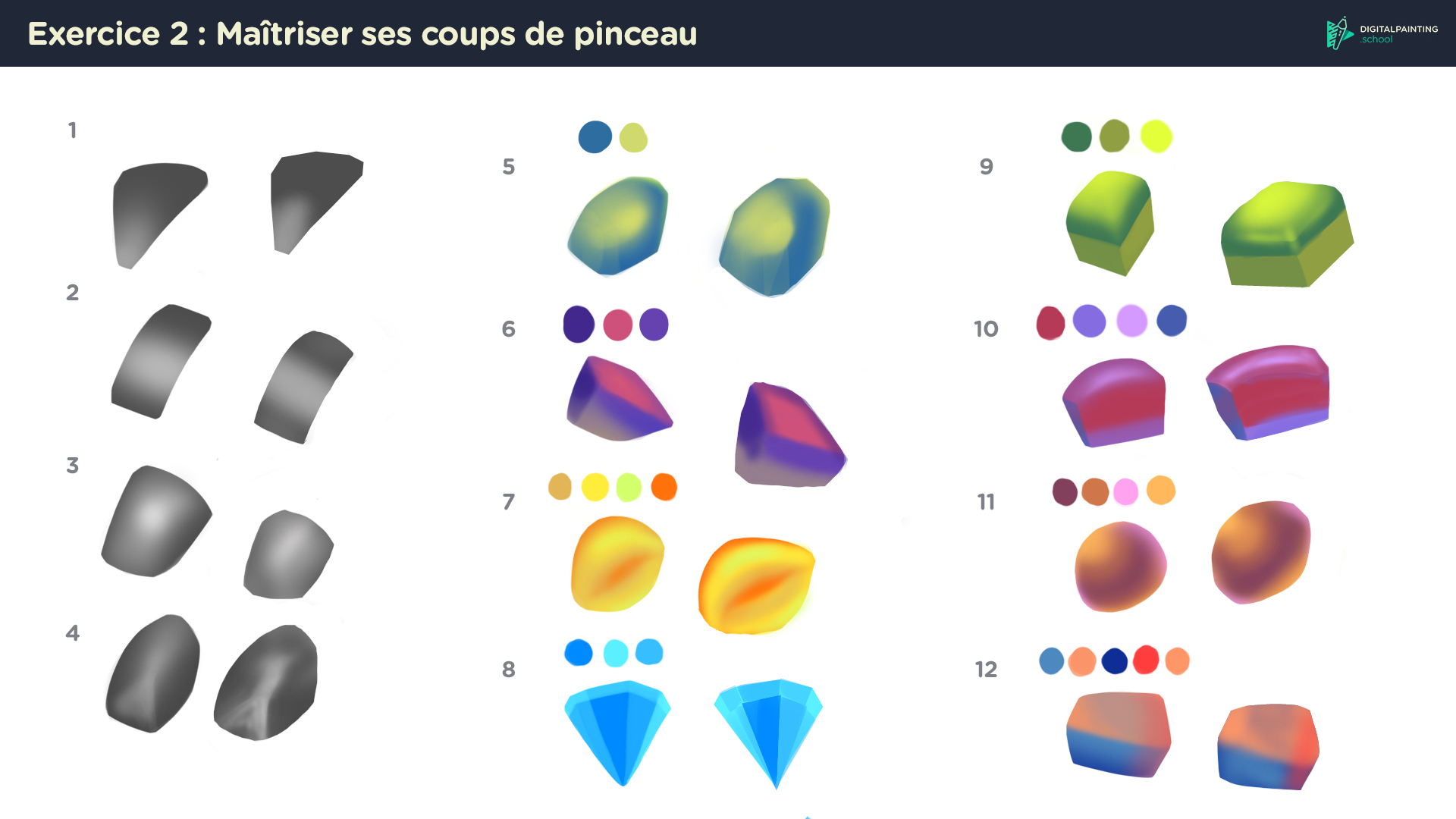 Hello tout le monde. En route pour ce chapitre 2. Je poste ici le résultat des premiers exercices! Bon brush à tous!