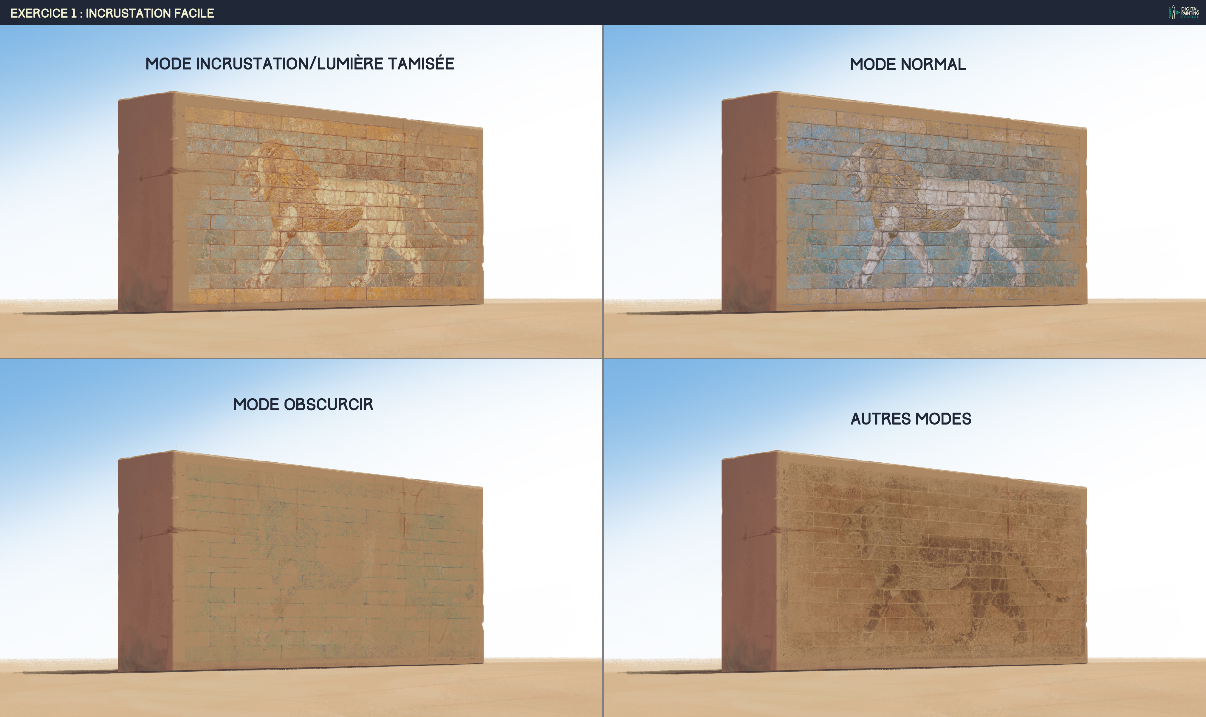Hello, c'est parti avec les premiers exos ! Je me suis pas tant amusé sur l'exo 2, essayer de bricoler des photos pour construire une image c'est pour l'instant pas trop mon truc... pas sûr que ça finisse vraiment par entrer dans mon workflow 😆
