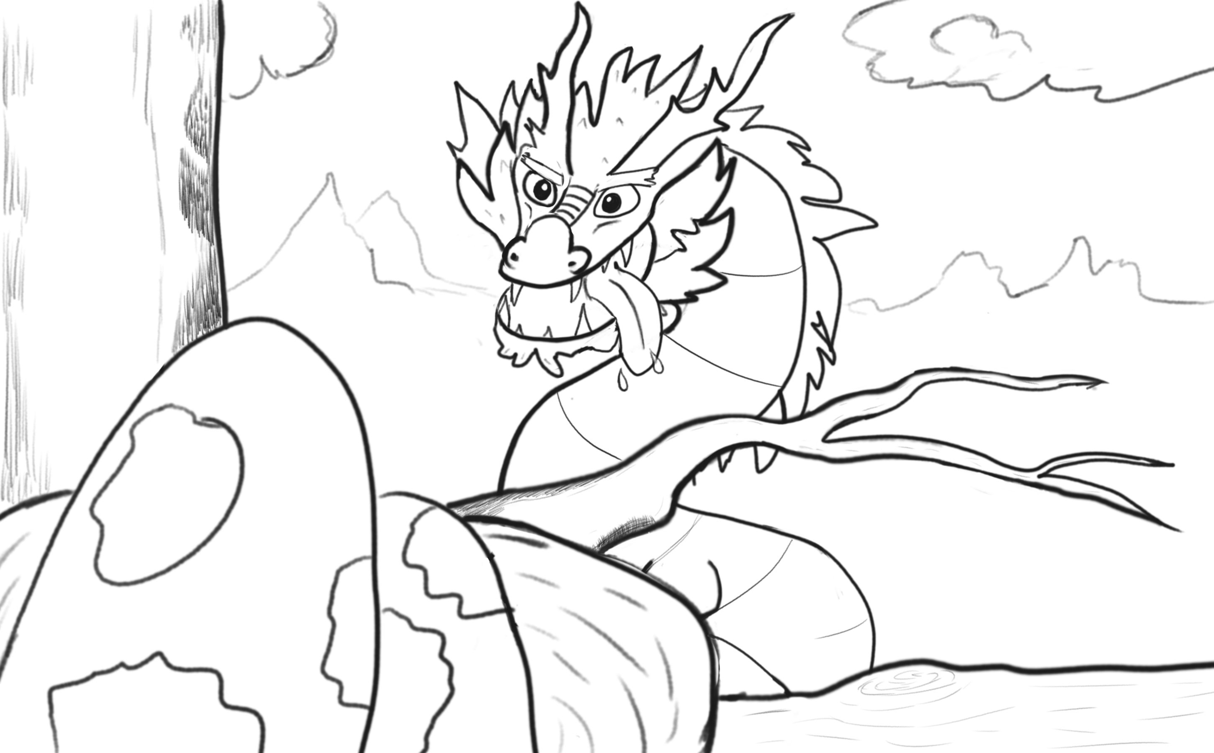 Au final, changement de composition ! Je trouve qu'elle marche mieux que l'autre (j'ai fais les lines du dragon un peu grosse mais on comprend le truc) Fait avec référence bien sûr (je n'ai pas le niveau pour faire ça de tête).