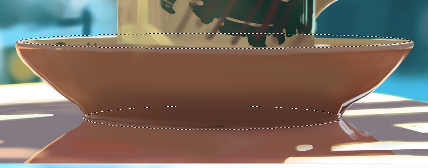 Hello @Lea BZR ! La tasse a une très bonne base ! Tu peux rectifier les angles qui parfois sont un peut trop "bend". N'hésites pas à les rendre plus droit. ça peut paraitre anodin mais ça change énormément la perception du volume et de la forme. Pour la surface de la tasse, hésites pas à d'avantage signifier le léger dégradé sombre de droite à gauche. D'ailleurs ce dégradé doit aussi se voir sur la fleure également (mais au lieu de l'assombrir sur la droite tu peux l'éclaircir sur sa gauche). Tu peux blend un peut plus le bas de ton reflet à gauche pour que ça fasse moins une bande blanche. Rajouter le reflet en haut à droite et le reflet au bout du bout de la surface de la tasse à droite également. Aussi, pour la même raison que pour clean les angles plus haut, il faut clean également les ellipses de la soucoupe. Tu peux t'aider de l'outil ellipse de séléction. Tu peux également déssaturer l'orange dans l'ombre et assombrir un peut plus la partie basse. -