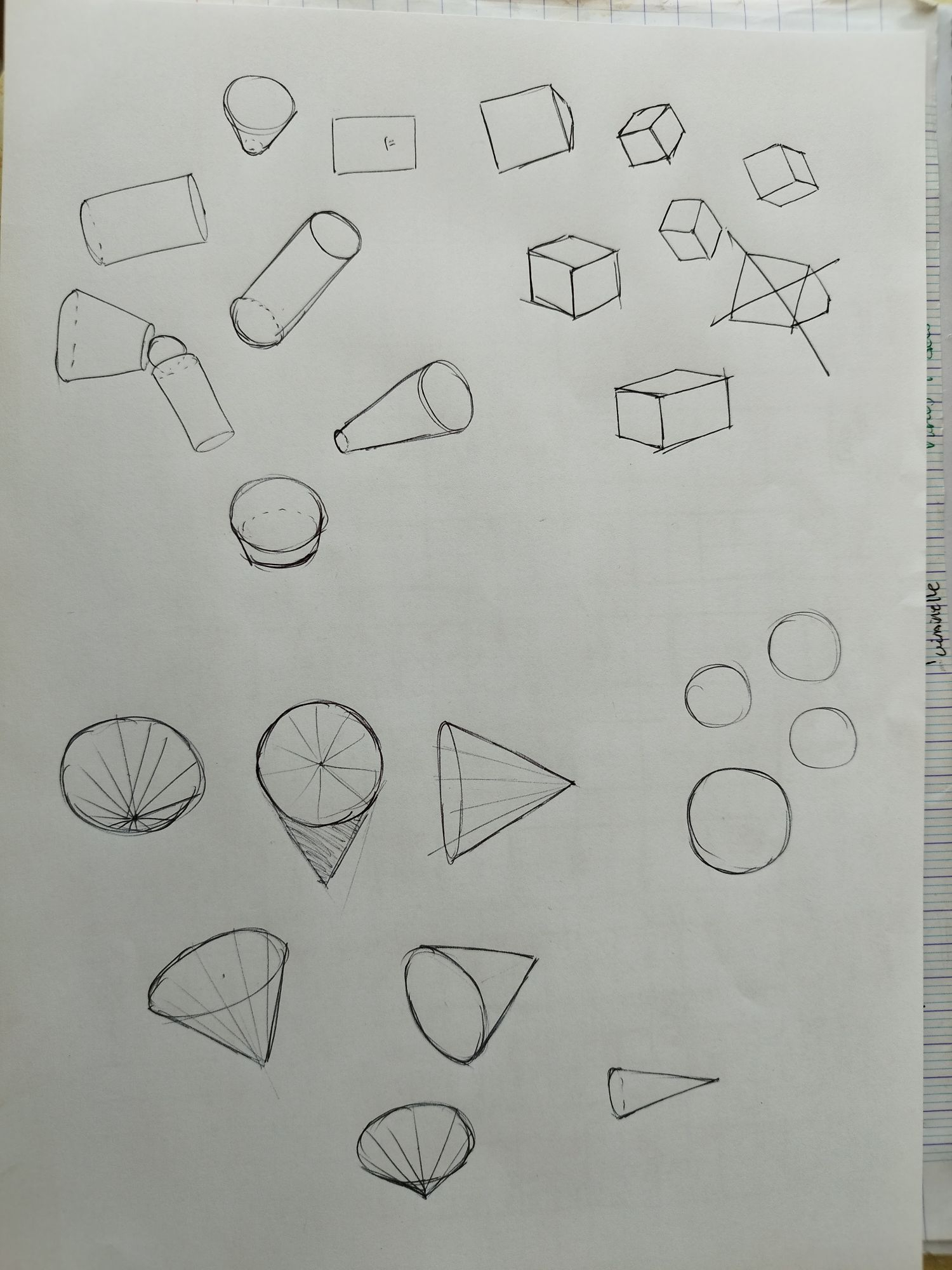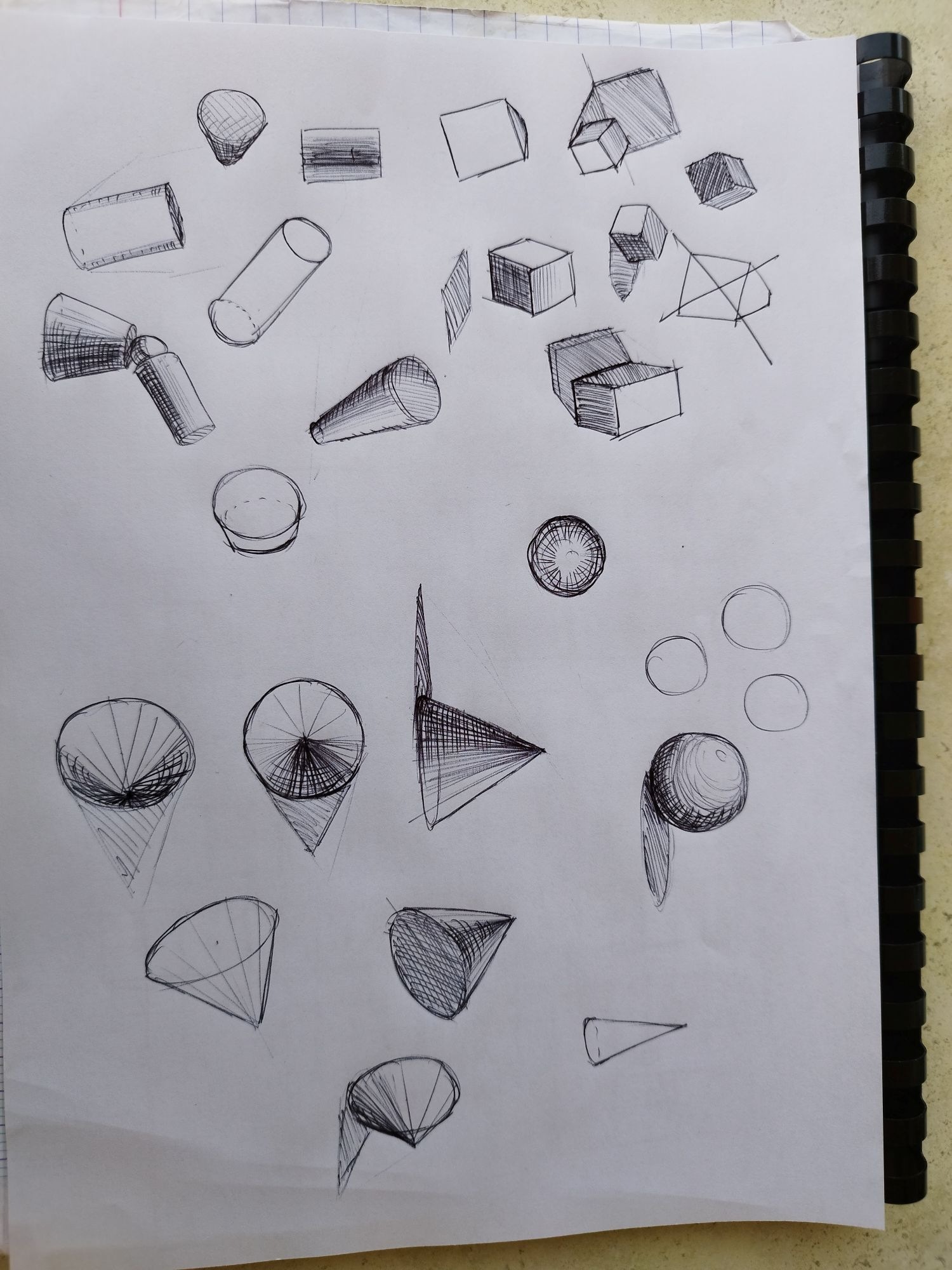 Nice tout ça ! Fais attention à certains endroits tes traits sont un peu trop mou et zig zag un peu. Surtout comme un objet dans ton dernier sketch qui est un objet électronique dur et et lisse, il faut des traits bien tendus et droits pour ressentir ça. Là tous les traits sont un peu corubés et zig zag, donc attention à mieux faire des lignes droites !