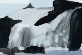 2. Salut @Bakou yes pour l'exo 2.5 c'est mieux pour les proportions du perso mais je vois que tu galère un peu sur la neige en effet pour le moment ton sol est bcp trop flou , tu as utilisé des brushes trop soft je pense . -Hésite pas a venir marquer davantage les ombres froides en bleu -ta forêt en arrière plan est un peu trop flou aussi maintenant -pour ton perso , la botte droite devait avoir une teinte un peu plus violacé et avec des reflet bleuté sur le côte droit -sur son bonnet ta lumière a gauche peut avoir une teinte plus chaude -tu peux venir flouter cette barrière Pour la montagne , c'est pas l'exercice le plus facile en effet , mais tu t'en ai bien sorti tout de même ! -tu peux venir assombrir cette zone -rajouter une teinte plus bleutée à ta cascade ici -- venir atténuer tes valeurs de roches foncées un peu plus dans le brouillard *- -assombrir un peu plus le côté droit de ton eau