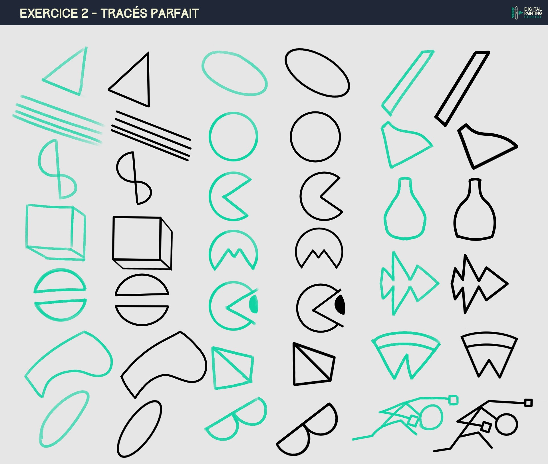 2. Bonjour, voici les premiers exercices de traits de croquis de l'exo 2, dans l'ordre ^^ Bon début de semaine !