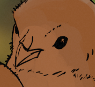 Le chapitre 2 de Chris "Torone" CBadrienG a répondu à un sujet de Chris "Torone" CB dans Chapitre 2 : Le Croquis Salut @Chris "Torone" CB, Content de le lire ! Les efforts paient 💪 Pour tes oisillons, c'est globalement très bien ! Je dirais juste que pour le grand oiseau : Tu as son oeil à notre droite qui est un peu trop gros/globuleux par rapport à celui de l'autre côté. Tu peux également le remonter de quelques pixels. Aussi, au niveau de la forme de son bec, celui ne continue pas suffisamment vers la droite au niveau des côtés : (pour comparaison) Ce qui lui donne un côté tordu étrange. Je te fais également un retour sur ta branche : qui est globalement un peu trop claire (dans les ombres), ce qui fait qu'elle ne ressort pas très bien sur le fond. Aussi, n'hésite pas à ajouter une couleur saturée (orange/jaune) en transition avec la highlight et l'ombre. C'est ce qui donne son côté "vibrant" à la lumière 👍 Bon travail !