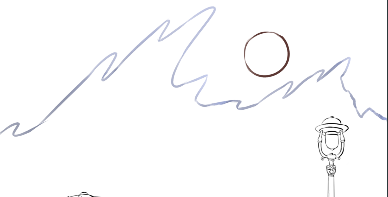 Jai effectué quelques modifications sur le croquis et j'ai poser mes aplats pour chaque élément. Les valeurs ce n'est pas trop ça pour l'instant mais ça avance. J'ai fait un test de couleurs histoire de poser l'ambiance mais ça risque de changer